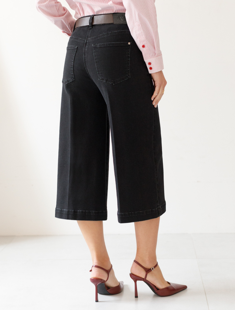 Состав: 70%Хлопок 28%ПЭ 2%ПУ Плотность: 13 OZ Размер товара на первом фото: 42 Свободные джинсовые бермуды черного цвета из эластичного денима обеспечивают комфорт и стиль в повседневном образе. Длинн... Показать описаниеые классические шорты с пятью карманами выполнены с широким подгибом по низу и со стрелками по всей длине, что эффектно удлиняет ноги и визуально стройнит силуэт. Правильная посадка и классический фасон подходит как для маленьких, так и для больших размеров. Материал эластичен, благодаря чему шорты отлично садятся по фигуре и не сковывают движения, обеспечивает долговечность изделия, сохраняя первоначальный вид даже после многократных стирок и активного использования. Шорты дополнены качественной фуртитурой и брендированным патчем из эко-кожи на поясе. Расклешенные шорты отличаются женственным кроем, такие бермуды легко комбинируются с различными элементами гардероба — от легких футболок до стильных рубашек, свитеров, позволяя создавать разнообразные образы как для повседневной носки, так и для отдыха. Сочетайте такие трендовые бермуды с высокими сапогами для создания классического осеннего образа или с обувью на плоском ходу для более расслабоенного в теплое время года. Эти повседневные шорты незаменимы в гардеробе каждой современной девушки и женщины.