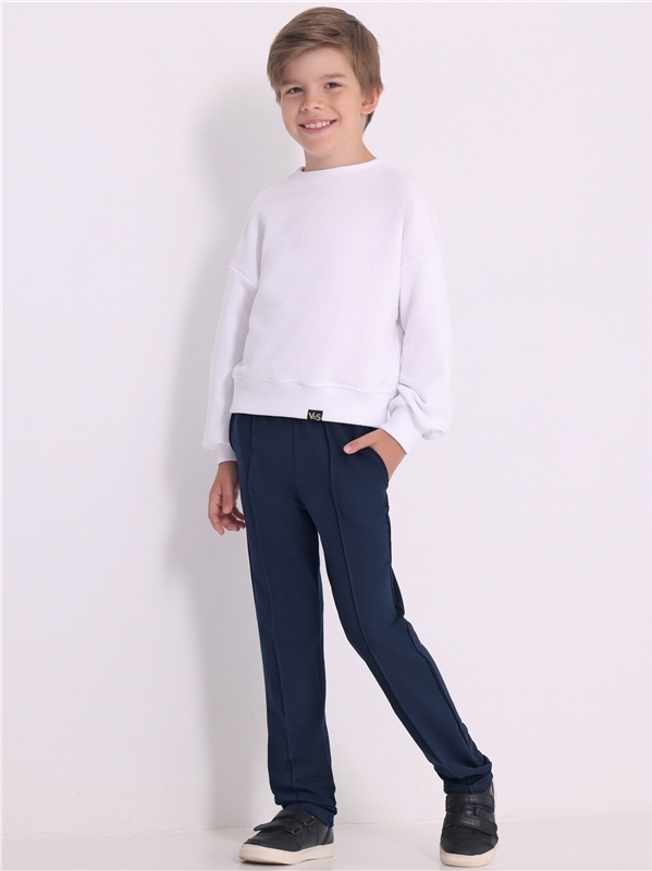 Брюки для мальчика выполнены из футера - плотного хлопкового полотна с лайкрой. Изделие на эластичном поясе, имеет удобные карманы и декоративные отстрочки-стрелки. Отличный вариант для школы! Уход: т... Показать описаниеолько машинная стирка (руками не стирать!) при температуре 40 градусов, без предварительного замачивания. Ассортимент осенне-зимнего периода. Состав: футер / хлопок 95% + лайкра 5%.