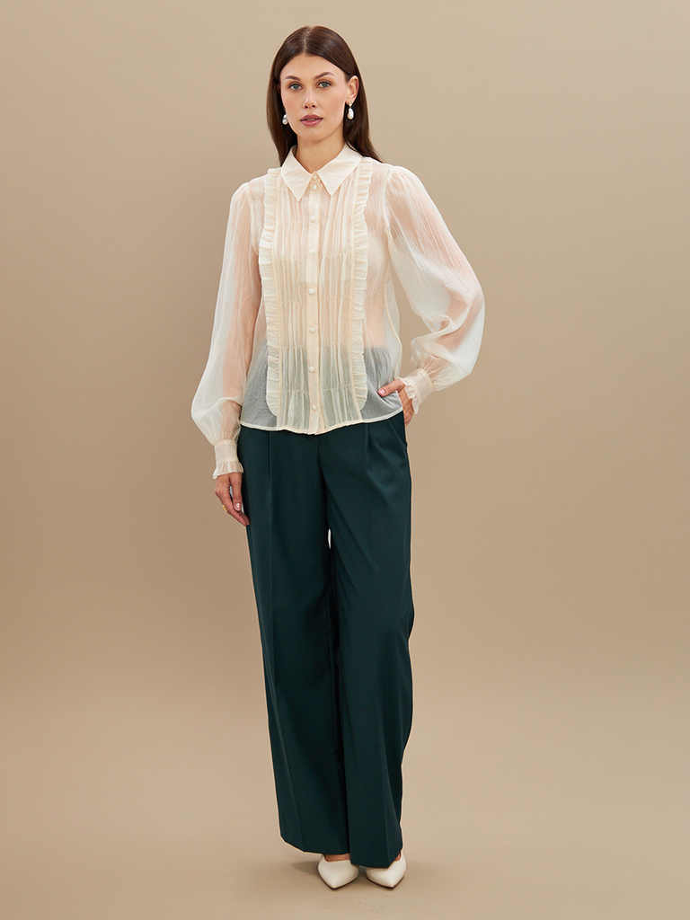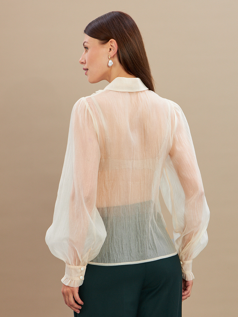 Блузка из органзы с бархатной завязкой и защипами OD-951-1 молочныйВопросы по товару