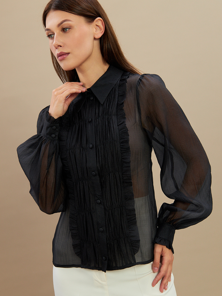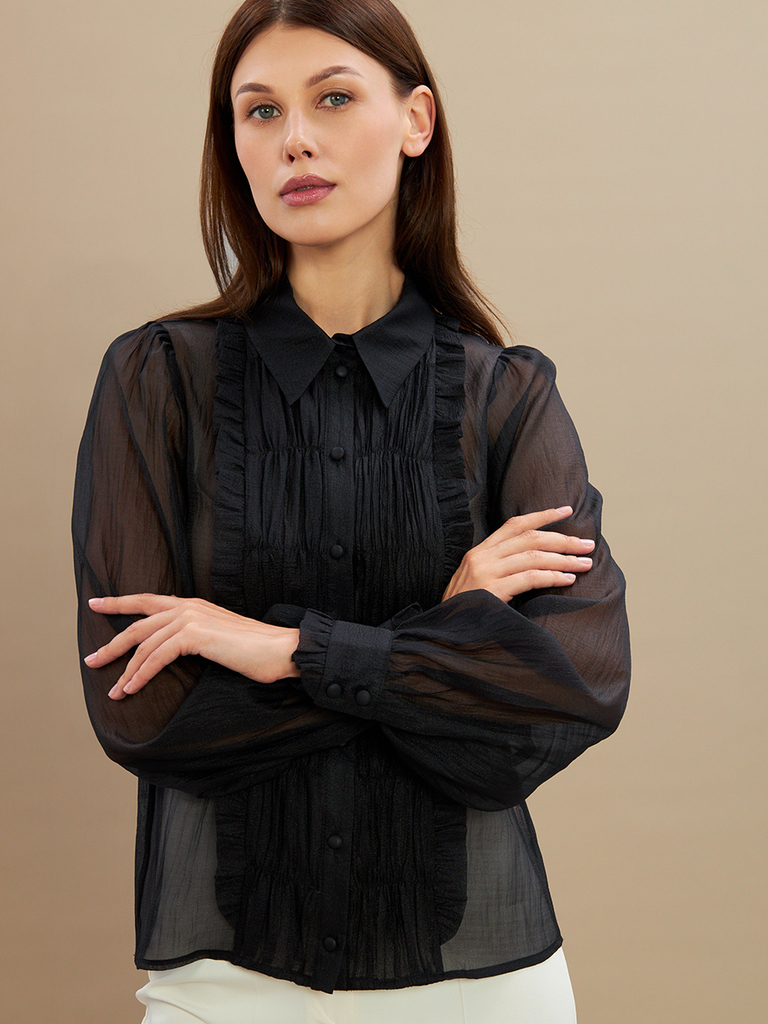 Блузка из органзы с рюшами и бантом OD-929-3 черныйВопросы по товару