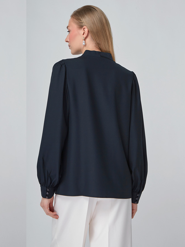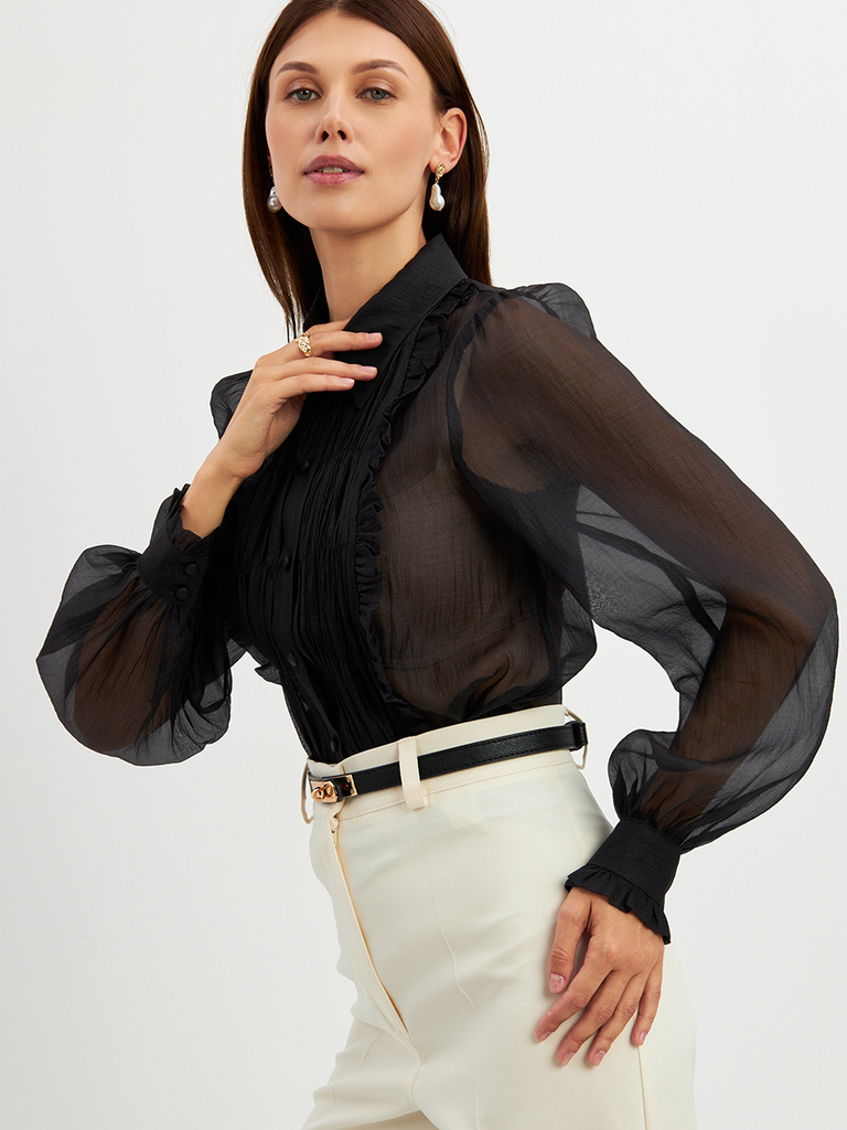 Блузка из органзы с бархатной завязкой и защипами OD-951-3 черныйВопросы по товару