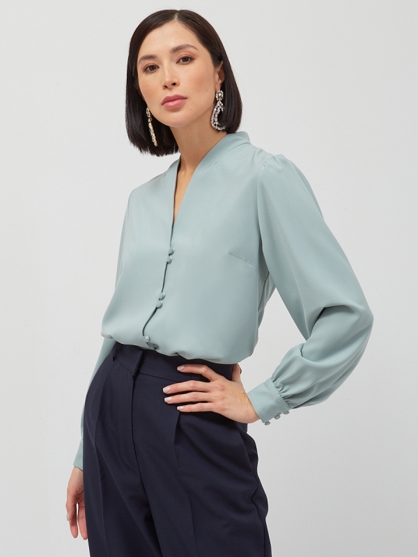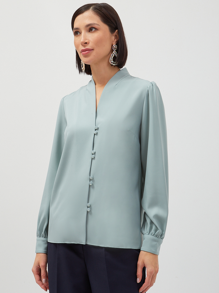 Состав: 45% полиэстер, 35% вискоза, 20% шелк,. Состав: Вискоза, Полиэстер, Шелк. Длина по спинке: 63 см. Длина рукава: 68,6 см. Принт: Однотонный. Рукав: Длинный. Сезон: Осень, Весна, Зима. Силуэт: Пр... Показать описаниеямой. Стиль: Повседневный, Деловой, Вечерний. Тип горловины: V-образный. Блузка прямого силуэта. Из однотонной блузочной ткани. Воротник-стойка с V-образным вырезом.Рукав втачной, длинный со сборкой по плечу и по низу, на манжете. Застежка на навесные петли и пуговицы на ножке. Рост модели 170 см. Изделие на модели 42 р-ра. Длина изделия по спинке 63 см. Подробное описание: https://seller.tantino.ru/bluza-s-vyrezom-4.html