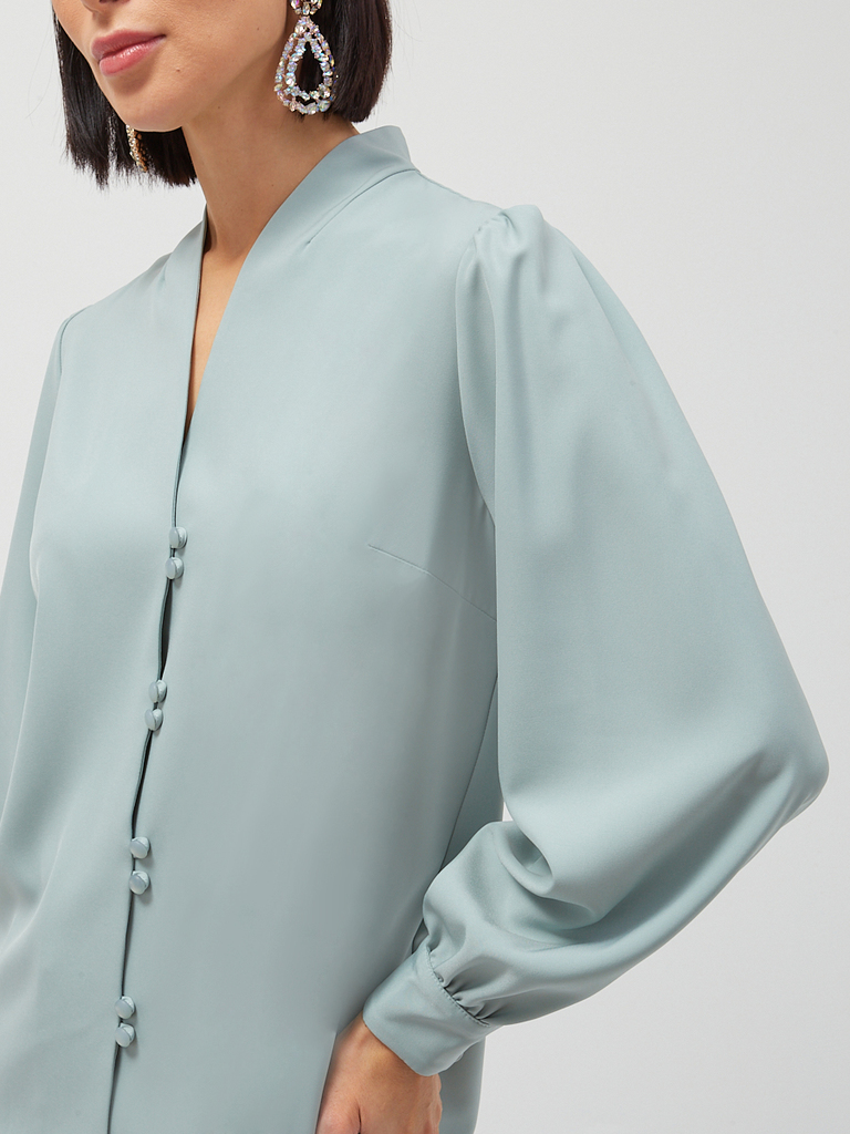 Блузка из органзы с бархатной завязкой и защипами OD-951-2 серо-зеленыйВопросы по товару