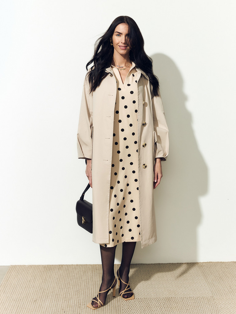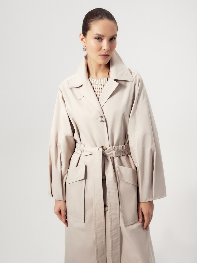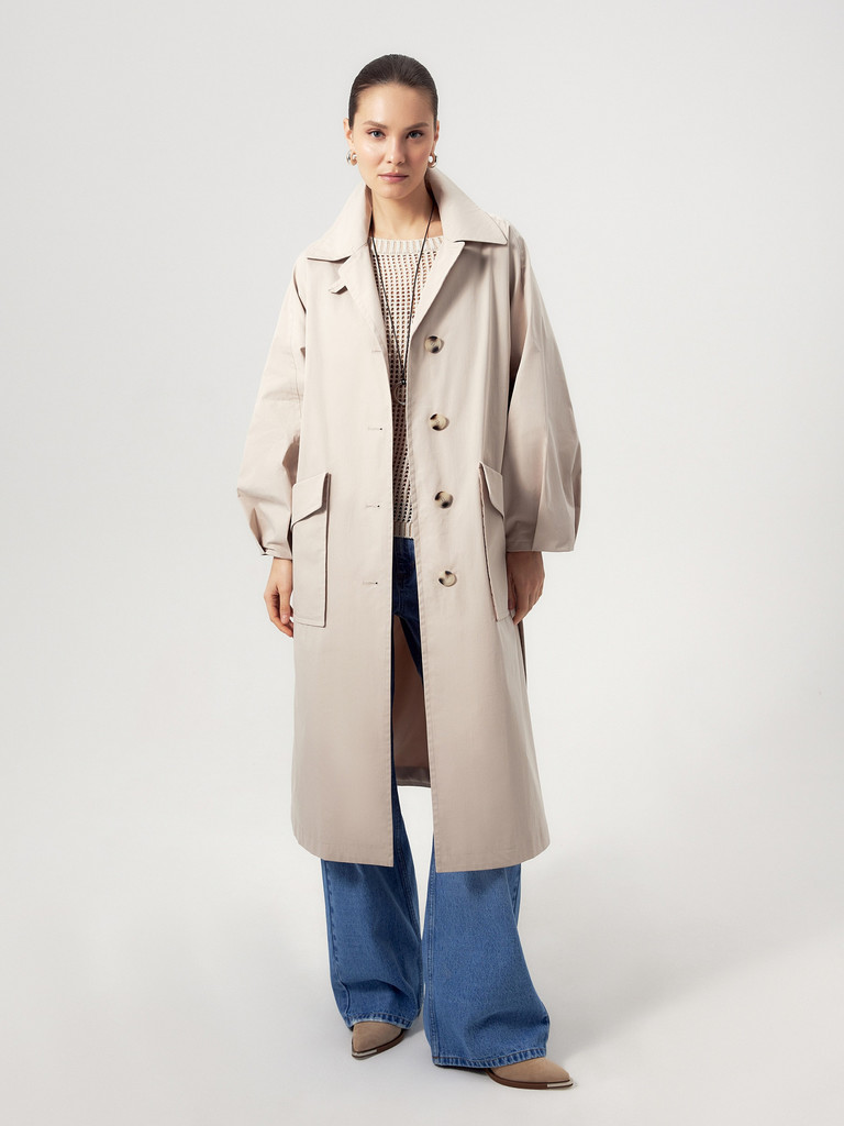 Цвет: Песочный Основная ткань: хлопок 60%, полиэстер 40% Покрой/Силуэт: прямой Тип рукава: рубашечный Тип воротника: английский воротник Вид застежки: на пуговицы Стиль: smart casual Длина изделия (17... Показать описание0 см): 112,5 Обхват бедер: 139 Обхват груди: 133 Ширина рукава (по низу): 36,5 Ширина рукава (охват плеча): 47 Длина рукава (170 см): 51 Обхват талии: 137 Ширина рукава (середина): 47 Тип карманов: листочка с втачными концами Декоративные элементы: пояс и паты из основной ткани Цвет одежды на фотографиях может незначительно отличаться от оригинального.