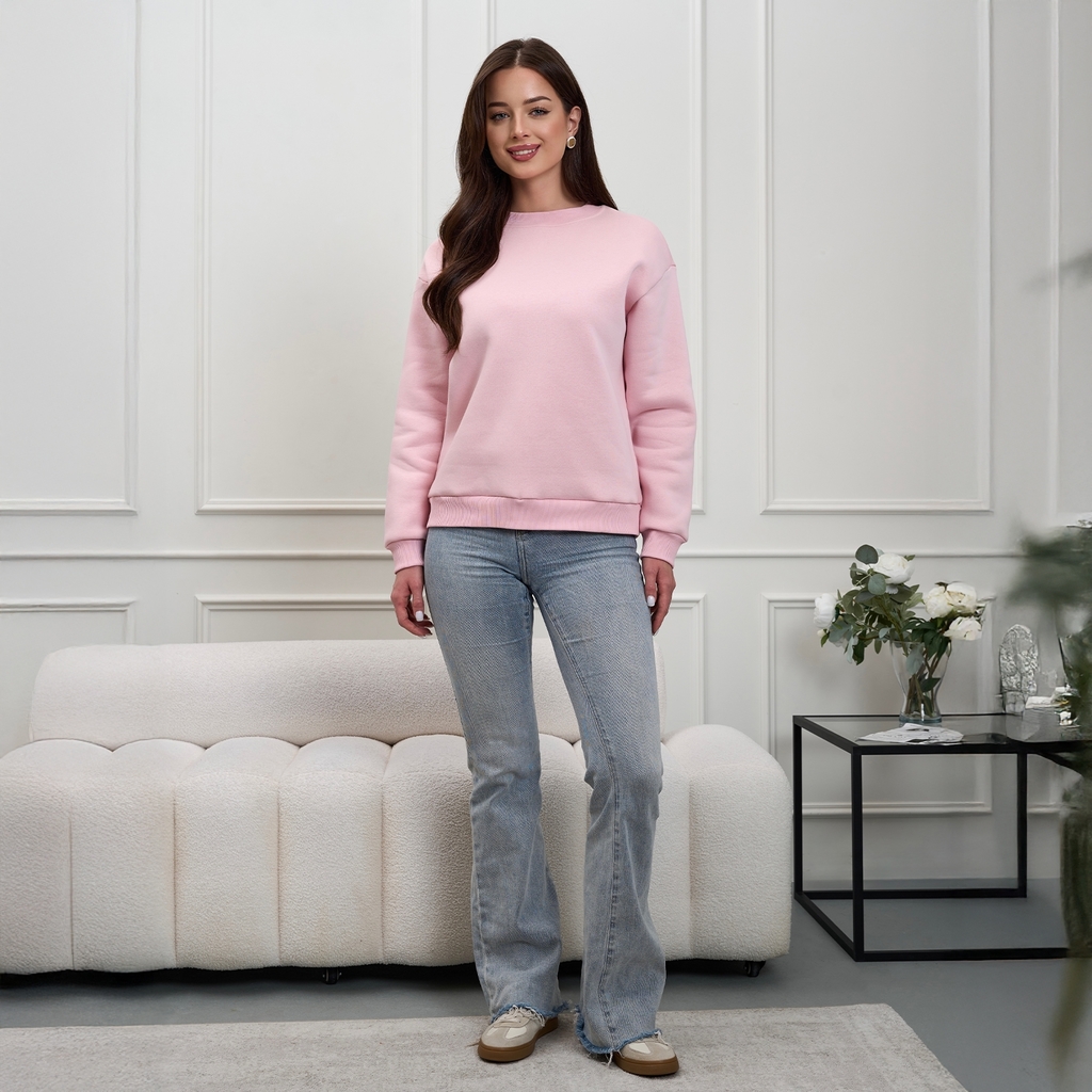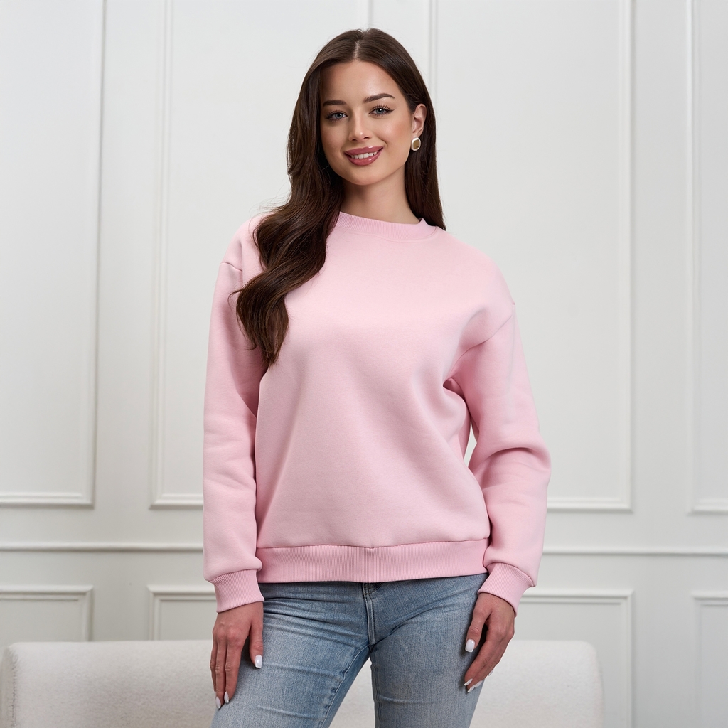 Женский базовый свитшот.Материал: French terry с/н - футер 3-х нитка с начесом. Одна из самых плотных разновидностей футера. Тёплый, приятный на ощупь материал с гладкой лицевой стороной и мягким, тол... Показать описаниестым ворсом с изнанки.В стирке требует более бережного обращения. Рекомендуется утюжить и стирать вывернутыми (особенно изделия с принтом) на изнаночную сторону при температуре 30 градусов.ВНИМАНИЕ! Оттенок цвета ткани может отличаться в зависимости от партии товара, также могут быть незначительные отличия цветовых оттенков разных деталей одного изделия. Производители ткани не считают это браком, объясняя это технологическими особенностями производства. Цветовая гамма товара может быть изменена (в рамках допуска) производителем трикотажных полотен в зависимости от серии поставки без предварительного уведомления.В связи с этим, подбор комплекта одежды в одном оттенке возможен только в процессе формирования единого заказа.Состав: 70% Cotton 30% PolyesterCotton - материал из натуральных волокон, который удобен в носке, быстро впитывает и отводит от тела влагу, хорошо пропускает воздух и не раздражает кожу. Хлопок гигиеничен, обладает устойчивостью к истиранию и разрыву, помогает балансировать температуру для избегания перегрева. Состав: 92% Cotton, 8% Elastane