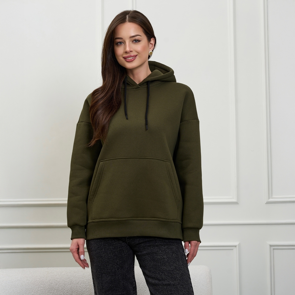 Женская базовая худи с капюшоном и карманом кенгуру.Материал: French terry с/н - футер 3-х нитка с начесом. Одна из самых плотных разновидностей футера. Тёплый, приятный на ощупь материал с гладкой ли... Показать описаниецевой стороной и мягким, толстым ворсом с изнанки.В стирке требует более бережного обращения. Рекомендуется утюжить и стирать вывернутыми (особенно изделия с принтом) на изнаночную сторону при температуре 30 градусов.ВНИМАНИЕ! Оттенок цвета ткани может отличаться в зависимости от партии товара, также могут быть незначительные отличия цветовых оттенков разных деталей одного изделия. Производители ткани не считают это браком, объясняя это технологическими особенностями производства. Цветовая гамма товара может быть изменена (в рамках допуска) производителем трикотажных полотен в зависимости от серии поставки без предварительного уведомления.В связи с этим, подбор комплекта одежды в одном оттенке возможен только в процессе формирования единого заказа.Состав: 70% Cotton 30% PolyesterCotton - материал из натуральных волокон, который удобен в носке, быстро впитывает и отводит от тела влагу, хорошо пропускает воздух и не раздражает кожу. Хлопок гигиеничен, обладает устойчивостью к истиранию и разрыву, помогает балансировать температуру для избегания перегрева. Состав: 92% Cotton, 8% Elastane