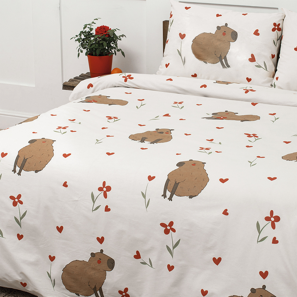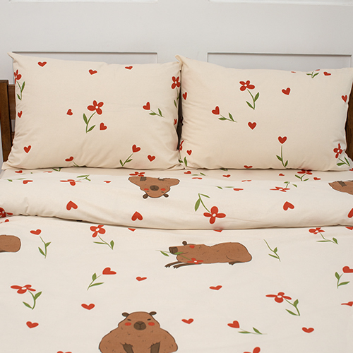 *КПБ 1,5 спальный с 1 нав.50*70, поплин,100% хлопок, пл. 110 гр./кв.м 'Капибара основа (светлый фон)' Пододеяльник 146х217; простыня 150х217; наволочка 50х70-1 шт.Вопросы по товару