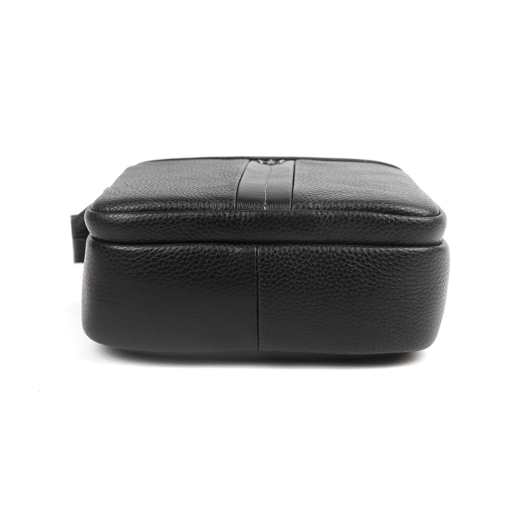 Классическая мужская сумка на плечо MIRONPAN выполнена из натуральной зернистой кожи в черном цвете. Основное отделение закрывается на полукруглую молнию с кожаным поводком. Внутри есть боковой карман... Показать описание для мелочей на молнии. На лицевой стороне расположены вместительный карман закрывается на две магнитные кнопки и декорирован акцентной пряжкой, на тыльной стороне также предусмотрен карман быстрого доступа на молнии. Плечевой ремень регулируется по длине, ширина - 4 см. Цвет фурнитуры - серебро. Вес 500 Размер 17 х 20 х 7 (длина х высота х ширина)