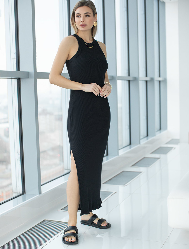 Платье из трикотажа в широкий рубчик с разрезамиПлатье из трикотажа в широкий рубчик с разрезамиПлатье из трикотажа в широкий рубчик с разрезами