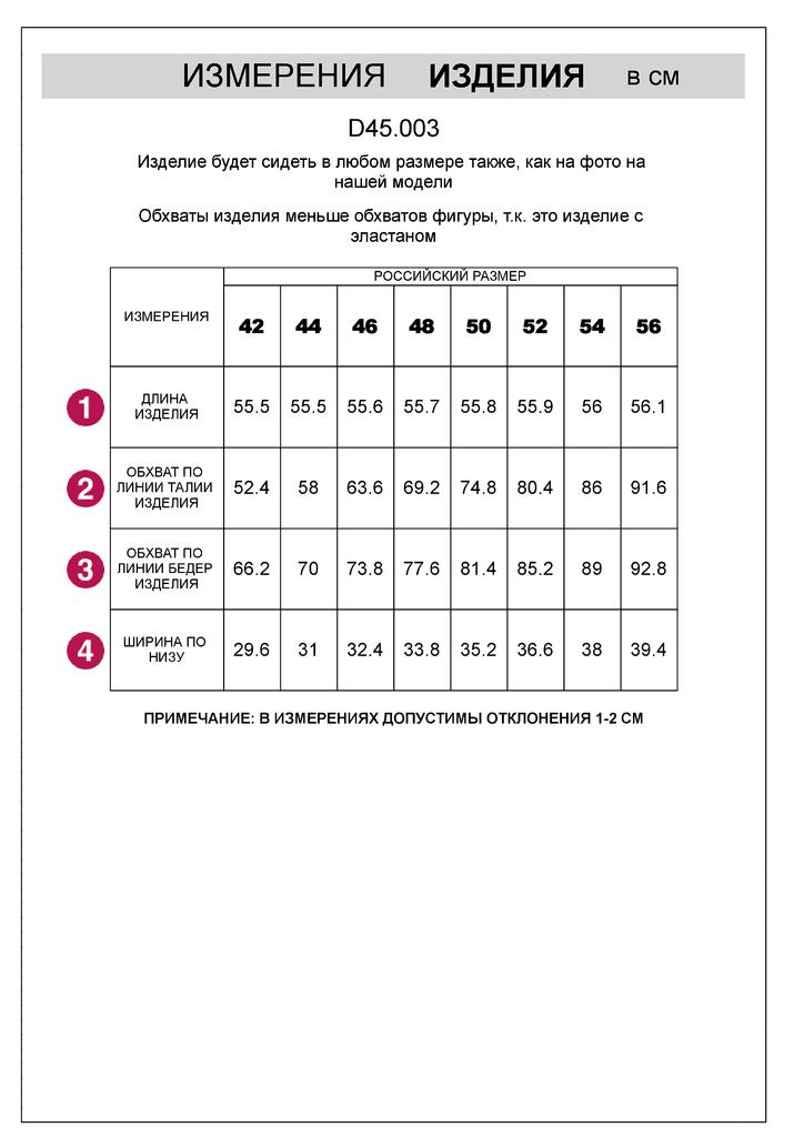 На каждый товар представлена своя размерная сетка на сайте поставщика.