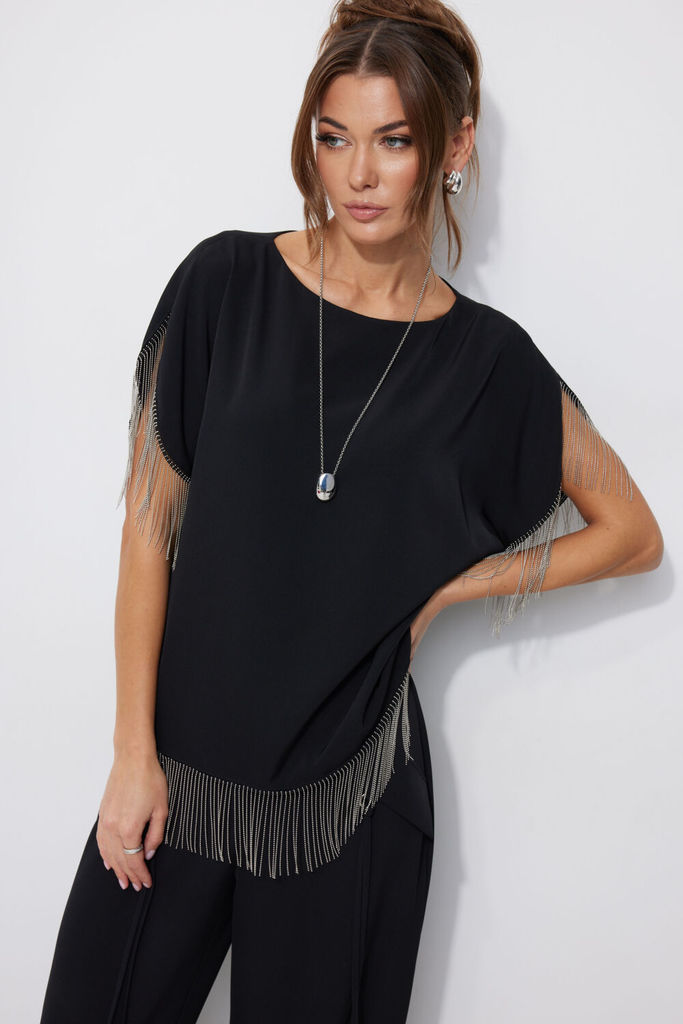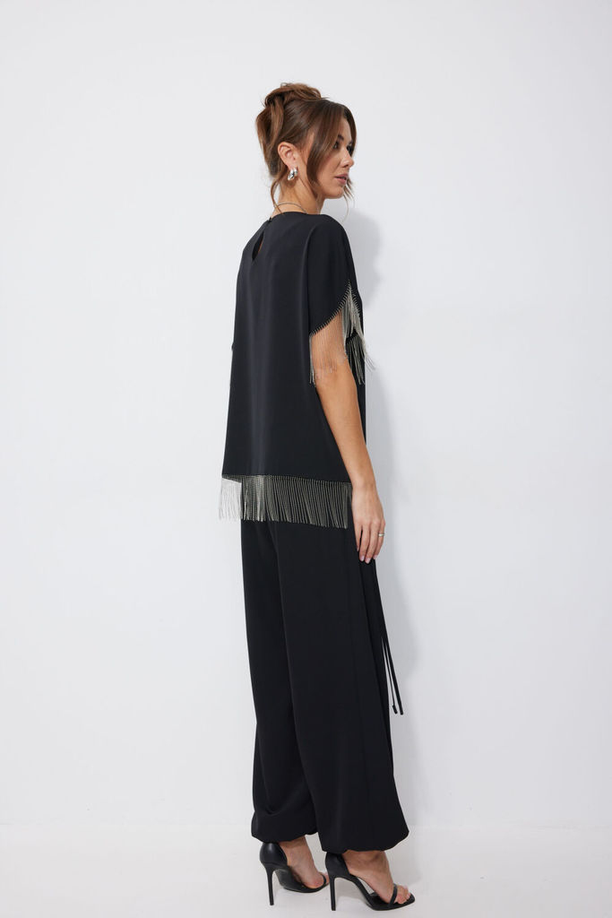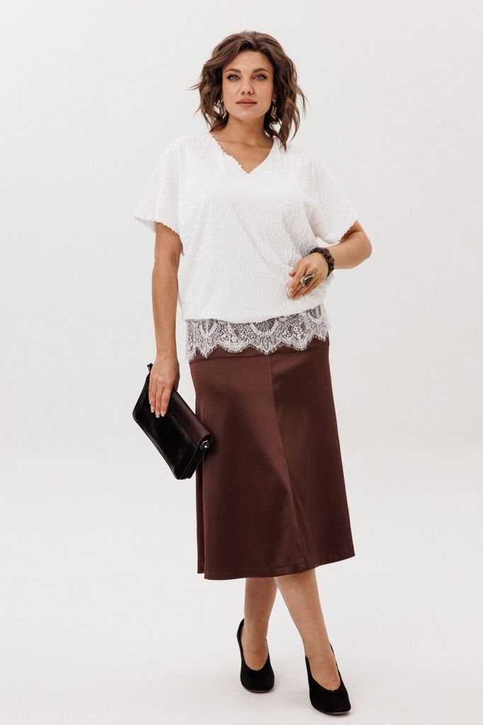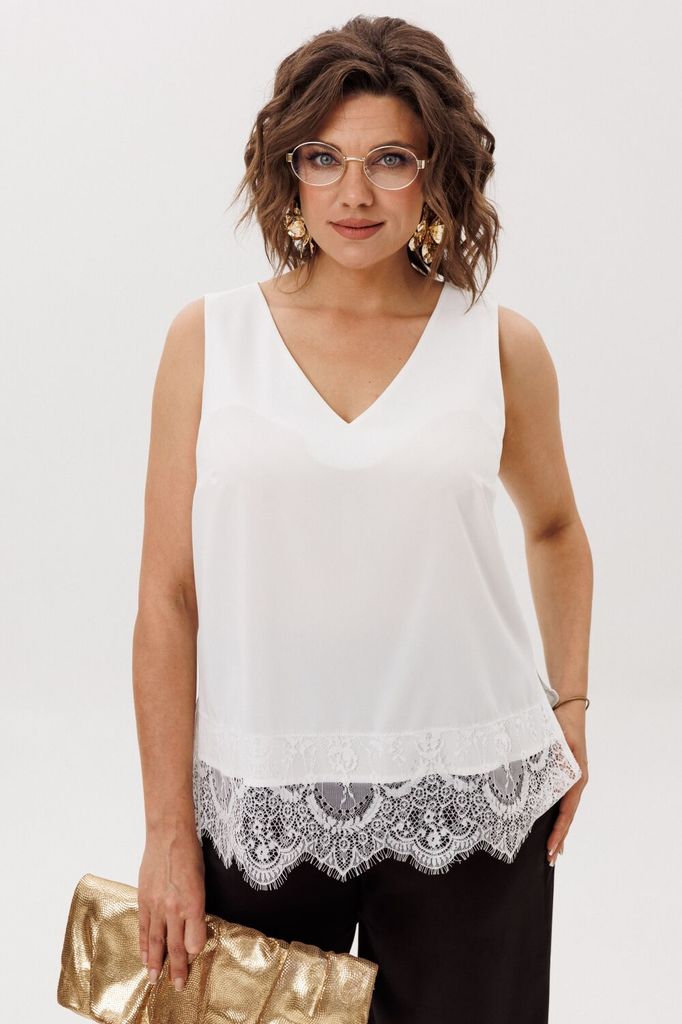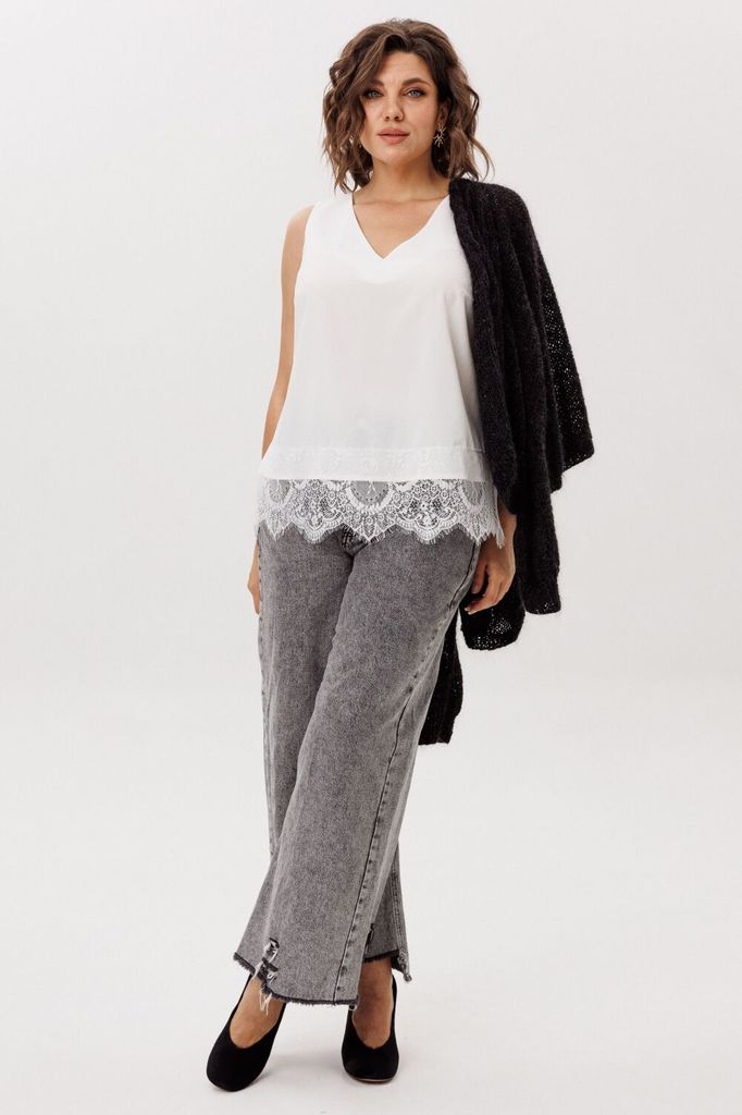 Состав: Вискоза-60%; ПЭ-40%; Сезон: Осень-Зима Рост: 164 Страна бренда: Беларусь Состав: Вискоза-60%; ПЭ-40%; Этот топ от Анелли — искусство быть неотразимой в любой момент. Его прямой силуэт служит и... Показать описаниедеальным фоном для изысканной игры деталей. Глубокий V-образный вырез мягко обрамляет линию шеи, придавая образу элегантную чувственность, а по бокам тонкие разрезы подчеркивают свободу и грацию движений. Но настоящая поэзия скрыта внизу: великолепное кружево, окаймляющее край, добавляет ноту романтики и загадочности. Он создан для того, чтобы его носить и как изюминку образа, кокетливо выглядывающую из-под строгого жакета или уютного свитера, и как самостоятельный акцент для особого случая. Это та самая вещь, что стирает границы между повседневной легкостью и вечерним шиком, делая каждый ваш день немного прекраснее. На модели в топе цвета «кристаллики льда» атласные брюки 1737, юбка 1510, блузон в пайетки 1522 и жакет 1661. Замеры: Размер 52: ОГ-112; ОБ-116; ДИ-62; Размер 54: ОГ-116; ОБ-120; ДИ-63; Размер 56: ОГ-122; ОБ-126; ДИ-63; Размер 58: ОГ-126; ОБ-130; ДИ-64; Размер 60: ОГ-130; ОБ-134; ДИ-64; Размер 62: ОГ-134; ОБ-138; ДИ-65;