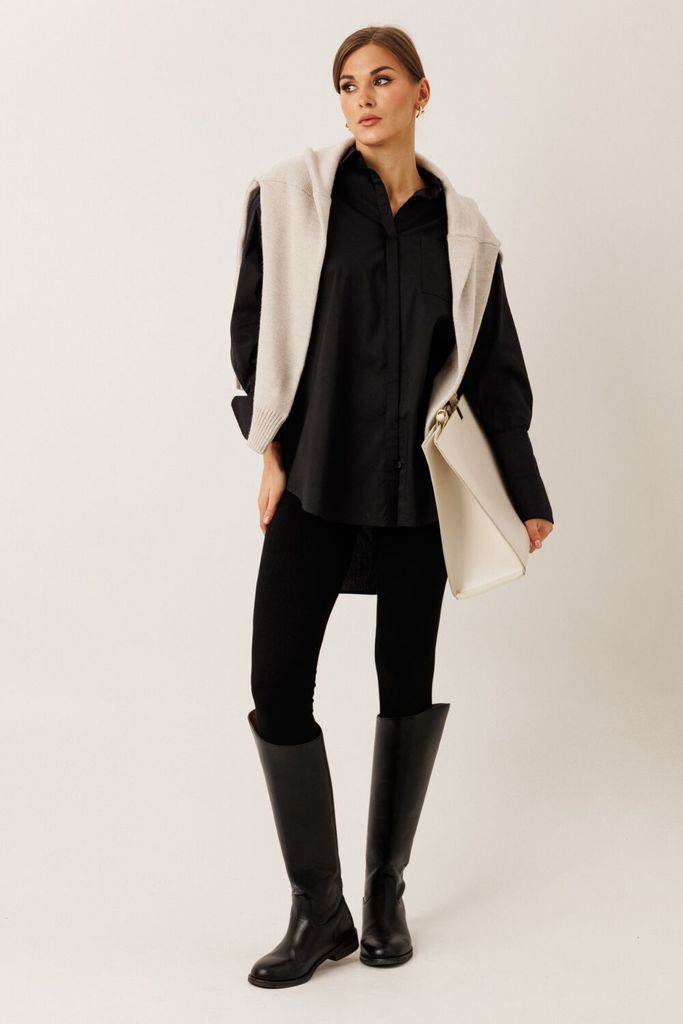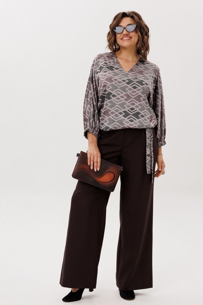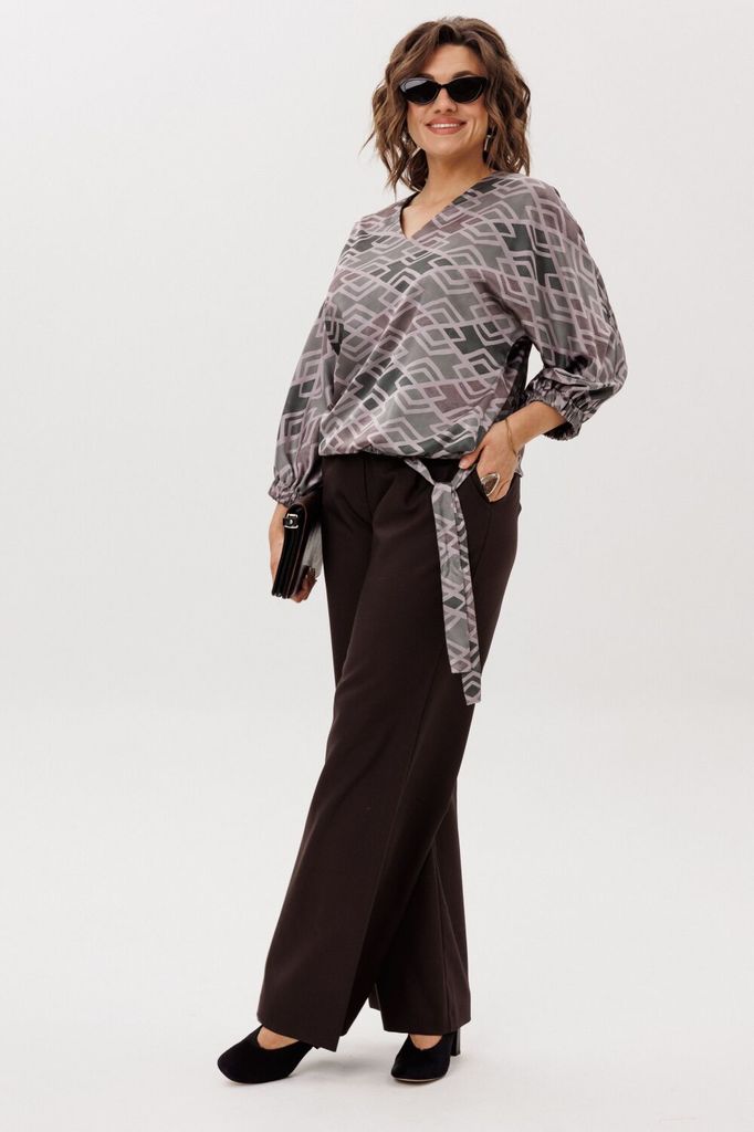 Состав: Вискоза-65%; ПЭ-32%; Спандекс-3%; Сезон: Осень-Зима Рост: 164 Страна бренда: Беларусь Состав: Вискоза-65%; ПЭ-32%; Спандекс-3%; Позвольте себе сиять в этой невероятно элегантной блузе от Анелл... Показать описаниеи, где каждая деталь продумана для создания безупречного образа. Мягкая струящаяся вискоза с благородным блеском мягко ниспадает, скрывая фигуру в лаконичном прямом силуэте свободного кроя, который дарит непревзойденное чувство комфорта и лёгкой невесомости. Глубокий V-образный вырез горловины служит изящным акцентом, мягко обрамляя лицо и добавляя образу женственности и шарма. Особую динамику и индивидуальность блузе придают детали: цельнокроеные рукава три четверти подчёркивают целостность и плавность линий, а притачной пояс и манжеты, собранные в нежную сборку благодаря эластичной резинке, создают выразительный контраст с текучестью основной ткани. Эта умная конструкция позволяет вам самостоятельно регулировать длину блузы, творчески преобразуя её силуэт — от парящего и расслабленного до более собранного и чёткого. Именно это сочетание роскошной ткани, безупречного кроя и продуманных деталей делает блузу истинной жемчужиной гардероба. Она станет верной спутницей в будни, даря комфорт в офисе, и безупречно дополнит ваш образ в день особенный, когда хочется чувствовать себя сияющей и неотразимой. На модели собран образ с брюками 1735 от Анелли. Замеры: Размер 52: ОГ-120, ОБ-124, ОП-52, ДИ-71, ДР-62; Размер 54: ОГ-124, ОБ-128, ОП-53, ДИ-72, ДР-63; Размер 56: ОГ-128, ОБ-132, ОП-54, ДИ-72, ДР-62; Размер 58: ОГ-134, ОБ-138, ОП-56, ДИ-74, ДР-63; Размер 60: ОГ-138, ОБ-142, ОП-57, ДИ-74, ДР-62; Размер 62: ОГ-142, ОБ-146, ОП-58, ДИ-75, ДР-63.
