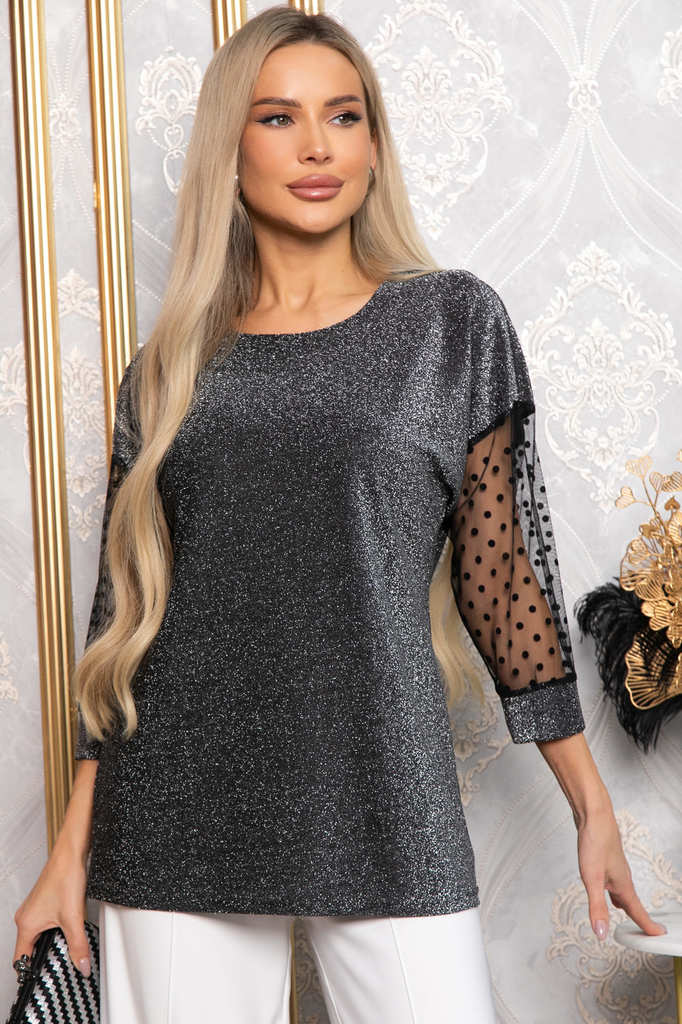 Состав: ПЭ-90%; Спандекс-10%; Сезон: Осень-Зима Рост: 170 Страна бренда: Беларусь Состав: ПЭ-90%; Спандекс-10%; Нарядная блузка выполнена из мягкой трикотажной сетки в пайетки. Блузка полуприлегающего... Показать описание силуэта с драпировкой по полочке. Горловина в блузке v-образной формы, по низу разрез. Рукава в блузке втачные, одношовные, по низу рукава две декоративных складки. Низ изделия и низ рукавов обработаны бейкой, застроченной на 0,7 мм. ""Зария"" — сияющий акцент вашего новогоднего образа. Блузка, расшитая пайетками, ловит свет при каждом движении. Замеры 46-54: ПОЛУОБХВАТ ГРУДИ (блузка) 46 48 50 52 54 ПОЛУОБХВАТ по низу (блузка) 47 49 51 53 55 ДЛИНА БЛУЗКИ по спинке от плеча 62 62 62 62 62 ДЛИНА РУКАВА (блузка) 45 45 45 45 45 ШИРИНА РУКАВА вверху 17 17,5 18 18,5 19 ШИРИНА РУКАВА по низу 15,5 16 16 16 16,5