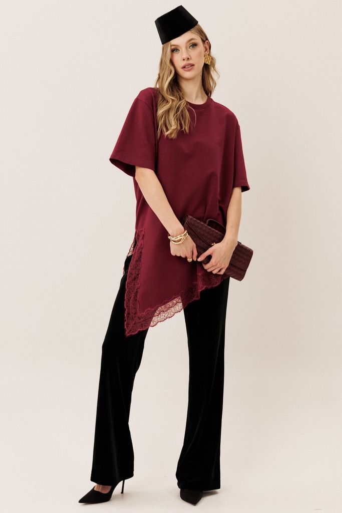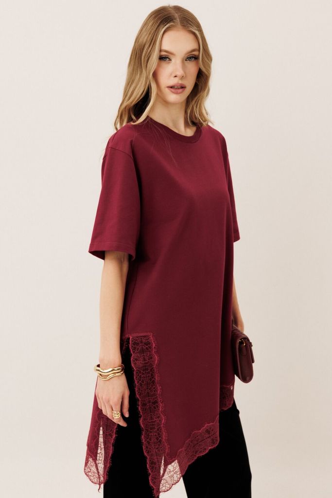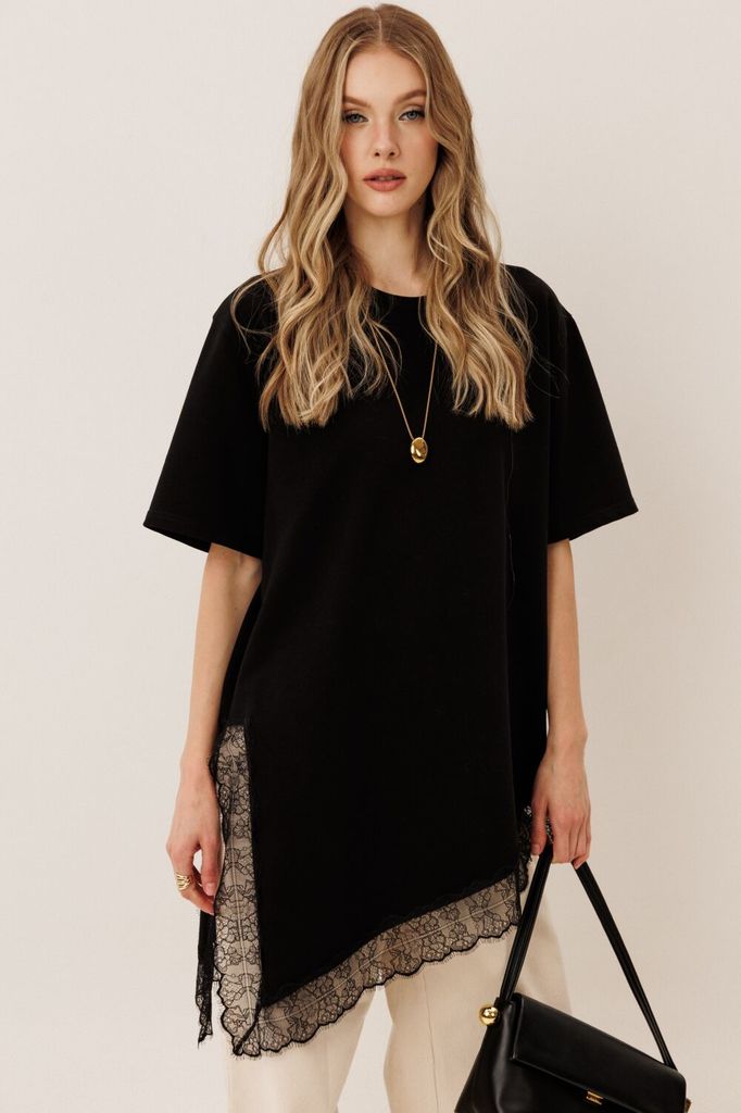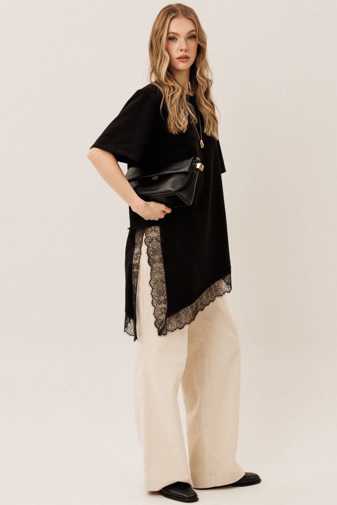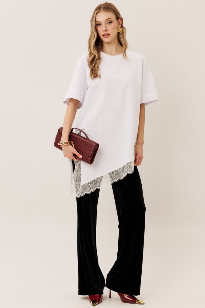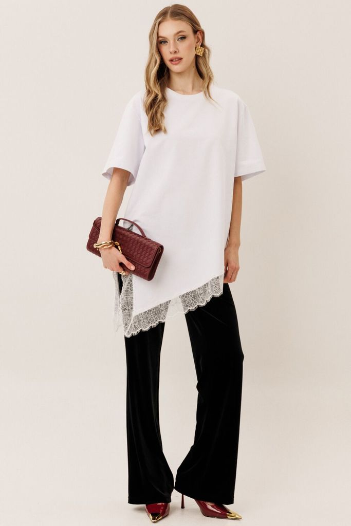 Состав: Хлопок-92%; Эластан-8%; Сезон: Осень-Зима Рост: 170 Страна бренда: Беларусь Состав: Хлопок-92%; Эластан-8%; Ассиметричный крой+трендовое кружево = базовая футболка уже не базовая! Футболка: пр... Показать описаниеямой силуэт oversize круглая горловина короткий рукав ассиметричный низ с кружевом Полуобхват груди футболки: 42 р - 56 см, 44 р - 58 см, 46 р - 60 см, 48 р - 62 см, 50 р - 64 см Длина рукава в футболке: 25 см Длина по спинке от горловины: 82 см
