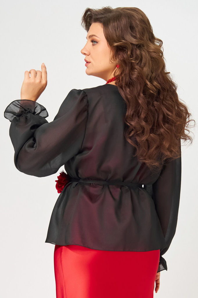 Состав: ПЭ-95%; Эластан-5%; Сезон: Осень-Зима Рост: 170 Страна бренда: Россия Состав: ПЭ-95%; Эластан-5%; Состав : 95% полиэстер, 5% эластан Материал : лиф- трикотаж, рукава и низ блузочная жатка Цвет... Показать описание : черный Принт : рукава и низ изделия в чёрный горох Силуэт : облегающий Карманы : отсутствуют Подкладка : отсутствует Вид застежки : пуговица по спинке Декоративные элементы : спереди декоративные пуговицы Длина : 42-71 см, 44-71 см, 46-72 см, 48-74 см, 50-75 см Длина по переду (ассиметричный крой) : 42-66 см, 44-66 см, 46-67 см, 48-68 см, 50-69 см Отснято с брюками Б13889-33М Преобразите свой образ с нашей стильной блузкой! Облегающий силуэт до талии подчеркнёт вашу фигуру. Особенностью этой модели являются пышные рукава со складками и мягкой сборкой внизу, которые завершаются аккуратными манжетами и придают вашему образу особый шарм. Дизайн блузки отличается выразительными деталями: эффектные складки украшают рукав, а оригинальная сборка внизу плавно переходит в манжеты. Нижняя часть изделия также имеет сборку, которая добавляет объём и динамику вашему образу. Эта универсальная блузка идеально подходит для любых ситуаций: будь то деловой день в офисе или повседневный выход. Внимание! Рекомендуем ориентироваться на размерную сетку и выбирать свой привычный размер, согласно размерной таблице. *Допуск отклонения длины при массовом производстве 1-3 см является нормой.