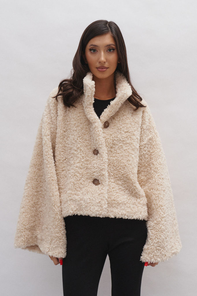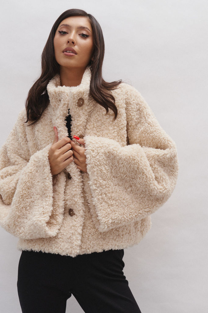 Сезон: Осень-Зима Рост: 170 Страна бренда: Беларусь Укороченная шуба прямого кроя выполнена из искусственного меха кудрявой текстуры. Характеристики: прямой крой, подкладка, горловина стойка, застежка... Показать описание центральная на петли пуговицы, рукав свободного кроя спущен. Длина по спинке 52 см, длина рукава от края горловины 80 см.