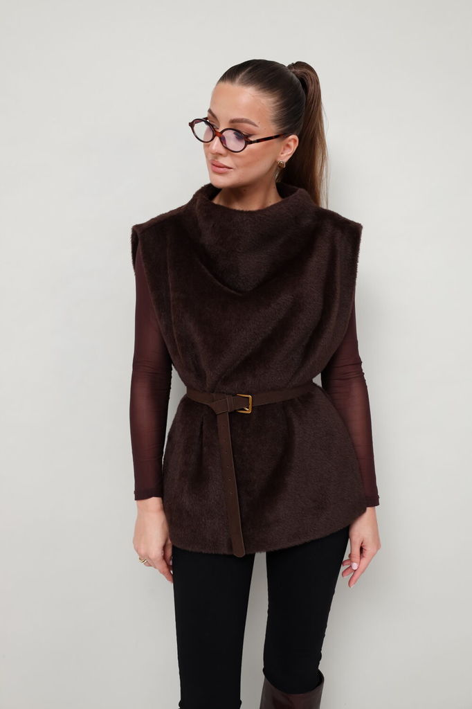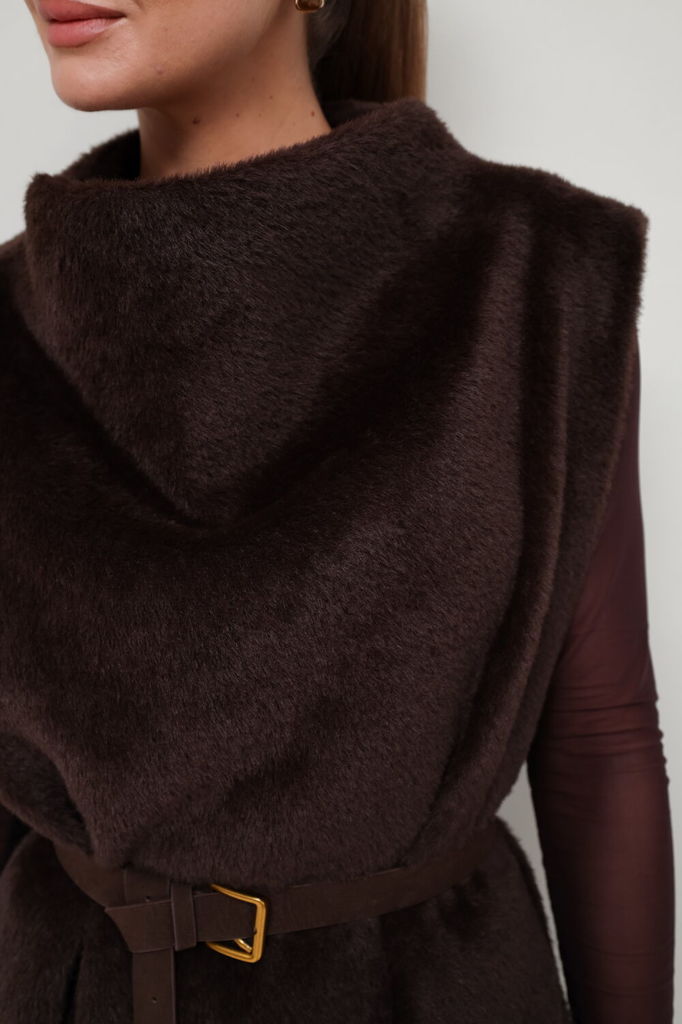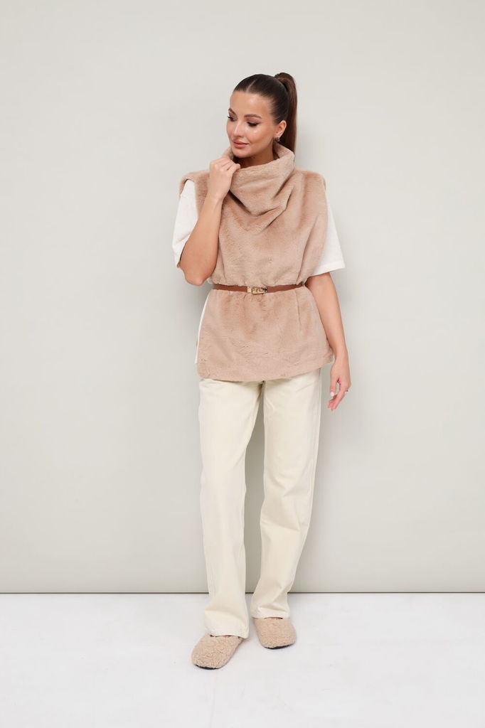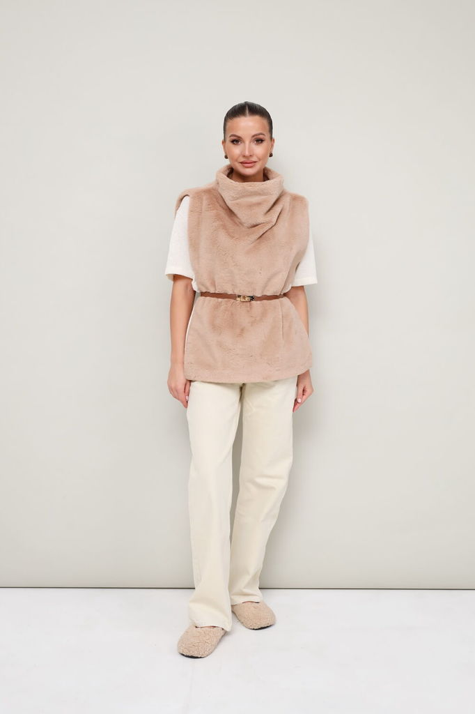 Сезон: Осень-Зима Рост: 170 Страна бренда: Беларусь Размеры: (42-44) ; (46-48). Стильный жилет-манишка прямого силуэта, выполнен из искусственного меха на подкладке. Без боковых швов. Цельнокроеный во... Показать описаниеротник-стойка. Идеальный выбор для холодных дней, который сочетает в себе комфорт, тепло и актуальный дизайн. *Ремень представлен как вариант стилизации образа. В комплект не входит.