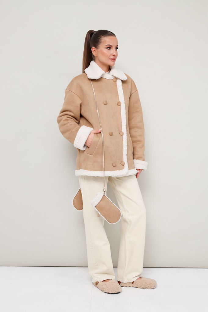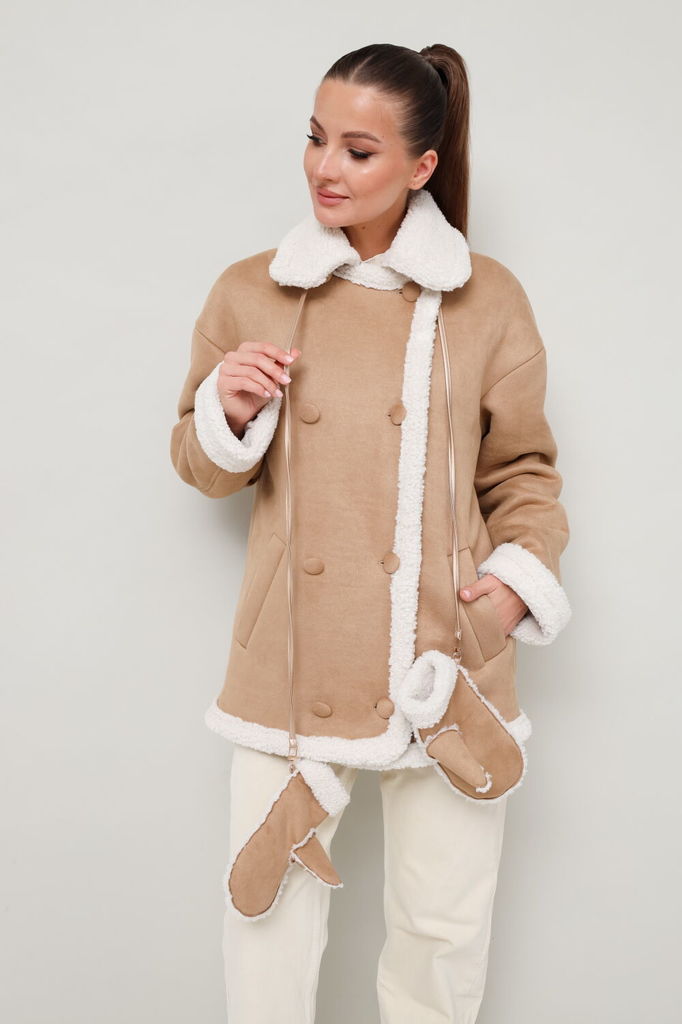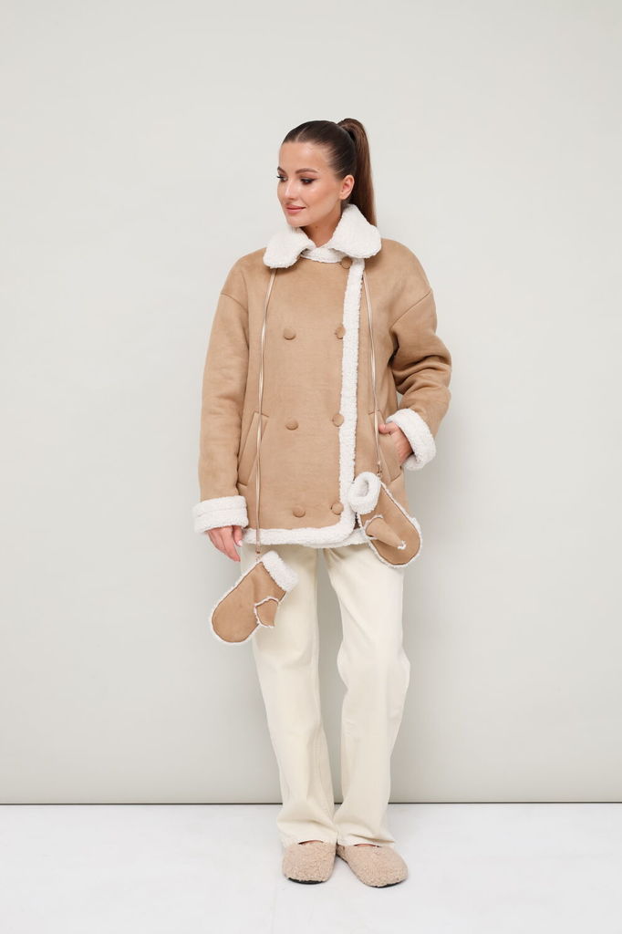 Состав: ПЭ-96%; Эластан-4%; Сезон: Осень-Зима Рост: 170 Страна бренда: Беларусь Состав: ПЭ-96%; Эластан-4%; Женская дубленка прямого силуэта, длиной до середины бедра. Воротник и лацканы отложные. Зас... Показать описаниетёжка двубортная на петли и обтяжные пуговицы. Спереди обработаны функциональные карманы с листочкой. Спущенная линия втачивая плеча, длинные двухшовные рукава с отворотом. Спинка с отрезной кокеткой. Дубленка декорирована искусственным мехом, который придает образу благородную мягкость и уют. Рукавицы из искусственного меха с отложными манжетами. Стильный и акцентный аксессуар, который гармонично дополнит образ с дубленкой. В комплекте шнур с креплением на карабин.