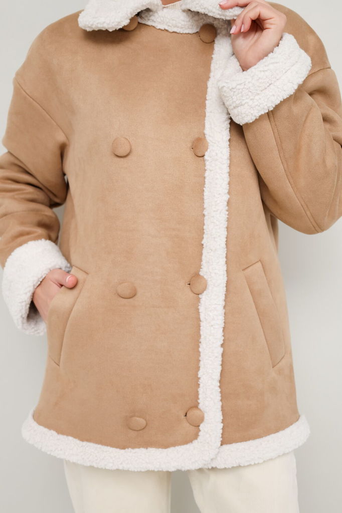 Состав: ПЭ-96%; Эластан-4%; Сезон: Осень-Зима Рост: 170 Страна бренда: Беларусь Состав: ПЭ-96%; Эластан-4%; Женская дубленка прямого силуэта, длиной до середины бедра. Воротник и лацканы отложные. Зас... Показать описаниетёжка двубортная на петли и обтяжные пуговицы. Спереди обработаны функциональные карманы с листочкой. Спущенная линия втачивая плеча, длинные двухшовные рукава с отворотом. Спинка с отрезной кокеткой. Дубленка декорирована искусственным мехом, который придает образу благородную мягкость и уют.