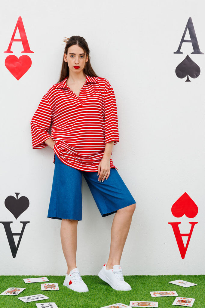 Состав: Хлопок-100%; Сезон: Лето Рост: 170 Страна бренда: Россия Состав: Хлопок-100%; Состав : 100% хлопок Материал : хлопок Цвет : Голубой Принт : полоска Силуэт : свободный Карманы : Отсутствуют Под... Показать описаниекладка : Отсутствует Вид застежки : пуговицы Декоративные элементы : отсутствуют Длина : 50-75 см, 52-78 см, 54-79 см, 56-80 см Отснято с джинсами Б13806-4М и с брюками Б12685-13 Блузка свободного кроя, изготовленная из хлопковой ткани с ярким принтом в виде полос, станет стильным дополнением к вашему гардеробу. Благодаря воротнику-стойке, она выглядит особенно элегантно. Эта блузка станет идеальным дополнением к вашему образу, если вы наденете её поверх топа или футболки. Она отлично подойдёт для прогулки или встречи с подругами. Блузка создаст гармоничный и завершённый образ, при этом сохраняя ощущение свободы и комфорта в течение всего дня. Внимание! Рекомендуем ориентироваться на размерную сетку и выбирать свой привычный размер, согласно размерной таблице. *Допуск отклонения длины при массовом производстве 1-3 см является нормой.