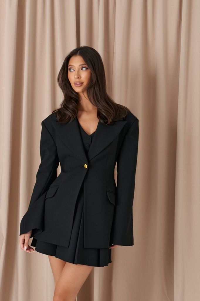 Состав: Вискоза-28%; ПЭ-65%; Спандекс-7%; Сезон: Осень-Зима Рост: 170 Страна бренда: Беларусь Состав: Вискоза-28%; ПЭ-65%; Спандекс-7%; Жакет полуприталенного силуэта. Выполнен из трикотажного полотна... Показать описание черного цвета. Брендированная подкладка. Горловина круглая. На уровне груди по имитация прорезного кармана. Рукав втачной. Спинка от боковых швов завязывается на пояс. Застежка центральная петли и пуговицы. Длина рукава 22 см. Длина спинки 75 см