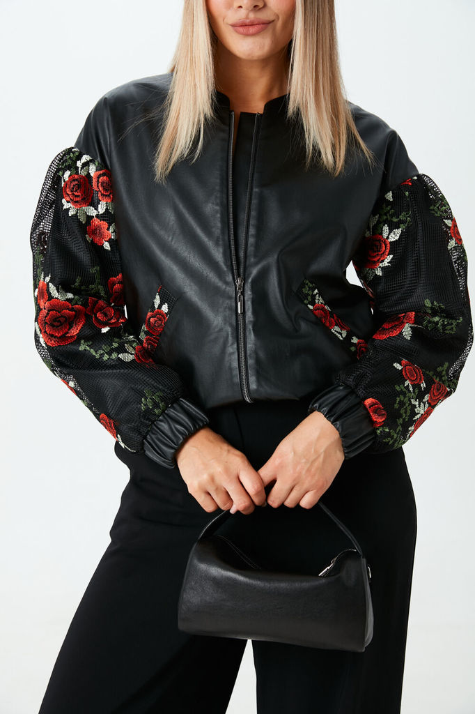 Состав: Вискоза-40%; ПЭ-60%; Сезон: Осень-Зима Рост: 164 Страна бренда: Беларусь Состав: Вискоза-40%; ПЭ-60%; Бомбер из экокожи с объёмными рукавами и застёжкой на молнию. Манжеты и низ бомбера на рез... Показать описаниеинке. Карманы и рукава бомбера декорированы сеткой с цветочной вышивкой.
