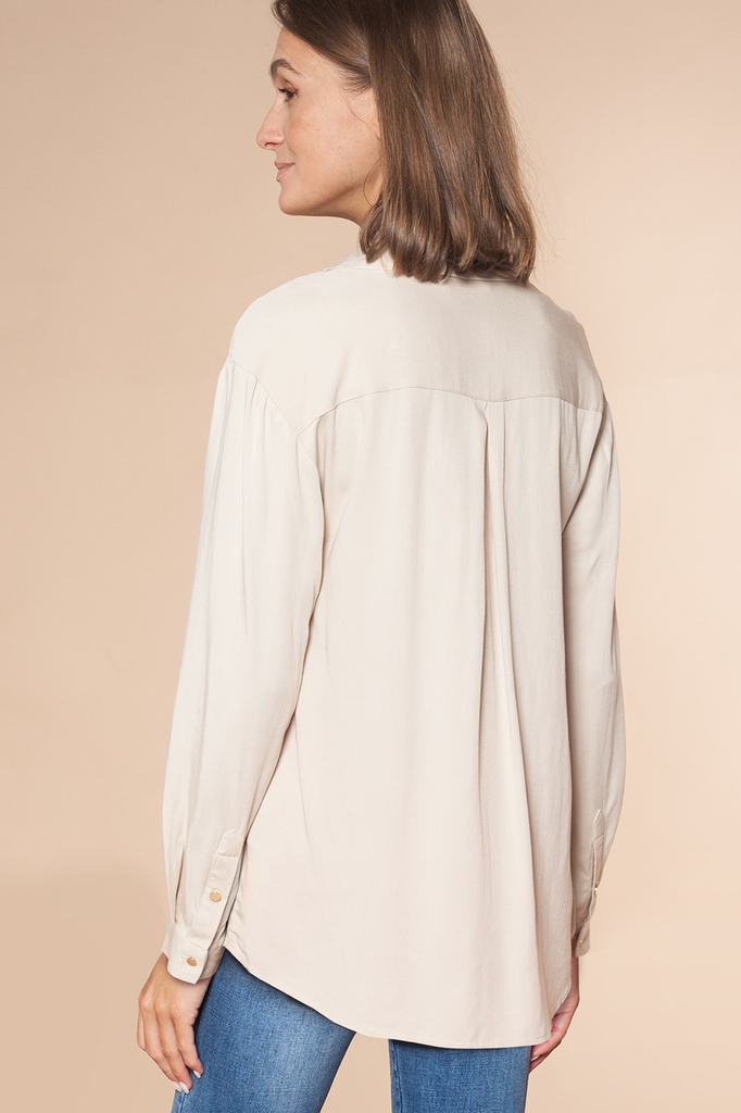 Состав: 55%Вис 45%Лиоцелл (Вис) Параметры модели на первом фото: Рост 172, бюст 88, талия 64, бедра 88 Блузка с имитацией карманов и удлиненными манжетами выполнена из премиальной вискозы и лиоцелла. ... Показать описаниеНа спинке изделия фирменный логотип бренда. Имитация карманов позволяет этому элементу выглядеть аккуратно без складок и фалд, которые вероятны на такой пластичной ткани.Застежка на золотистые пуговицы. Приятная на ощупь ткань охлаждает кожу в жаркую погоду. Отлично впишется в нестрогий офисный дресс-код или в расслабленном повседневном образе с джинсами.