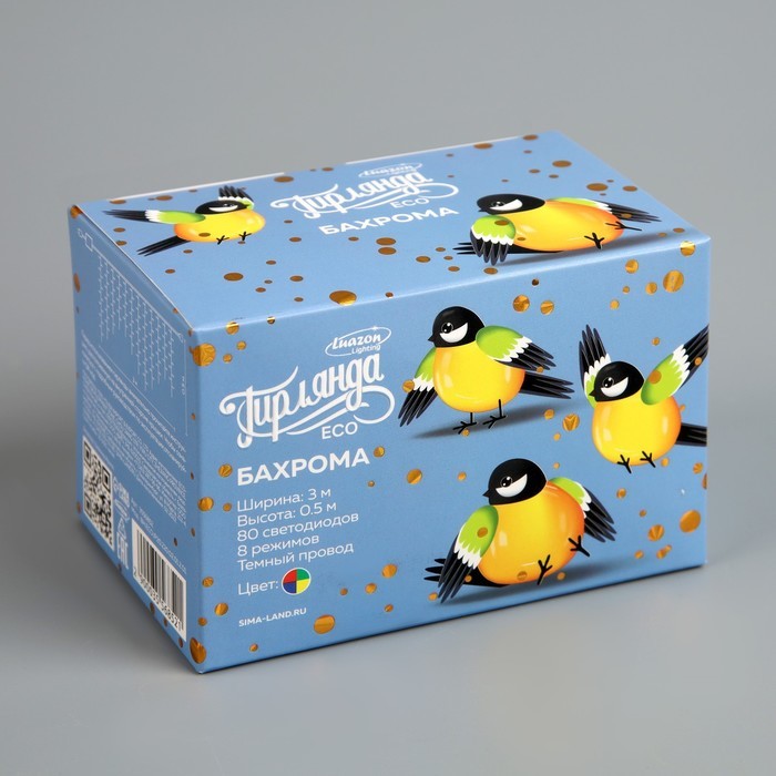 Гирлянда «Бахрома» 2.4 ? 0.7 м с насадками «Шарики», IP20, прозрачная нить, 108 LED, свечение синее, 8 режимов, 220 ВВопросы по товару