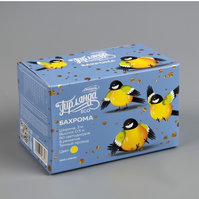 Гирлянда «Бахрома» 3 ? 0.5 м, IP20, тёмная нить, 80 LED, свечение жёлтое, 8 режимов, 220 ВВопросы по товару