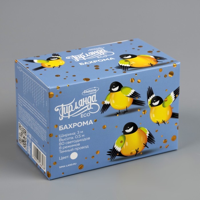Гирлянда «Бахрома» 3 ? 0.5 м, IP20, прозрачная нить, 80 LED, свечение тёплое белое, 8 режимов, 220 ВВопросы по товару