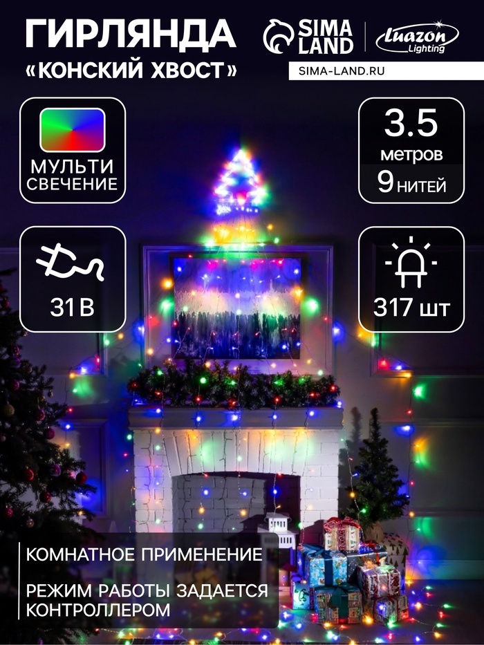 Светодиодная фигура «Ёлка» 3.5 м, пластик, 9 нитей, 31 В, свечение мульти Вопросы по товару
