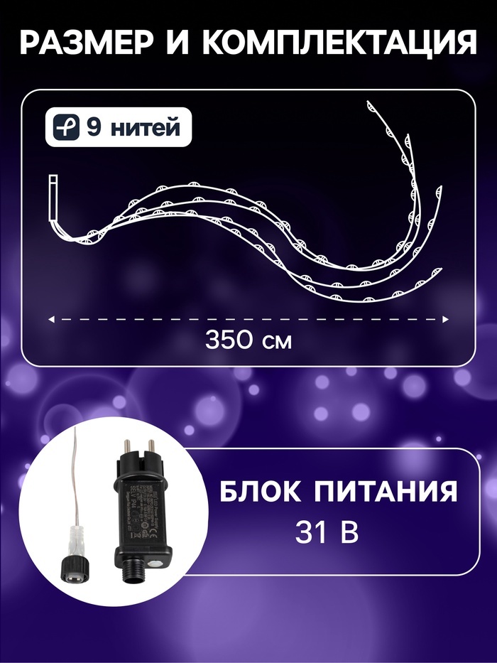 Светодиодная фигура «Ёлка» 3.5 м, пластик, 9 нитей, 31 В, свечение тёплое белое Вопросы по товару
