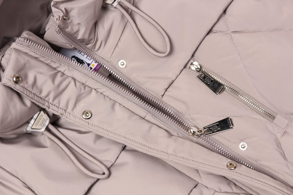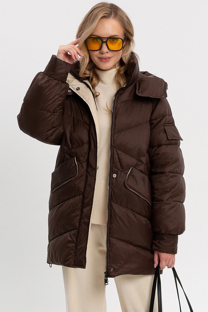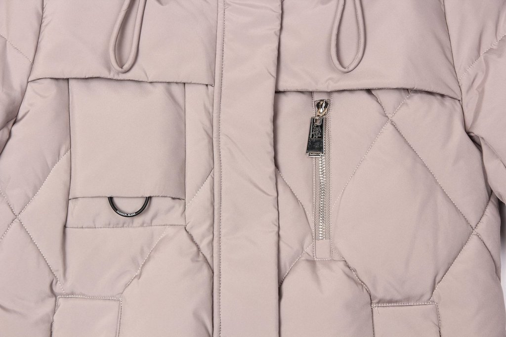 Модное женское пальто зимнее среднего объема, на синтепухе, станет незаменимым элементом гардероба в холодное время года. Выстроченное прямыми строчками, оно создает современный и лаконичный силуэт, п... Показать описаниеодчеркивая чувство стиля своей обладательницы. Асимметричные кокетки на передней части добавляют образу оригинальности и динамики, выделяя пальто среди прочих. Красивые карманы-листочки, украшенные декоративными молниями, не только функциональны, но и служат стильным акцентом, придающим пальто изысканность. Они идеально подходят для хранения мелочей или просто для того, чтобы согреть руки в прохладную погоду. Большой и теплый капюшон с модными фиксаторами и шнурками обеспечивает надежную защиту от ветра и снега, а внутренний воротник- стойка добавляет дополнительный комфорт и тепло. Втачной рукав с трикотажным манжетом плотно прилегает к запястью, предотвращая проникновение холодного воздуха внутрь. Подкладка с дополнительным слоем термофина гарантирует оптимальную теплоизоляцию, позволяя чувствовать себя комфортно даже в самые морозные дни. Это пальто – идеальное сочетание стиля, комфорта и функциональности, созданное для современной женщины, ценящей качество и элегантность в каждой детали. Оно станет вашим надежным спутником в зимние месяцы, подчеркивая вашу индивидуальность и безупречный вкус. Утеплитель синтепух + на подкладе дополнительный слой утеплителя термофин, плотность 60. Температурный режим до -25.