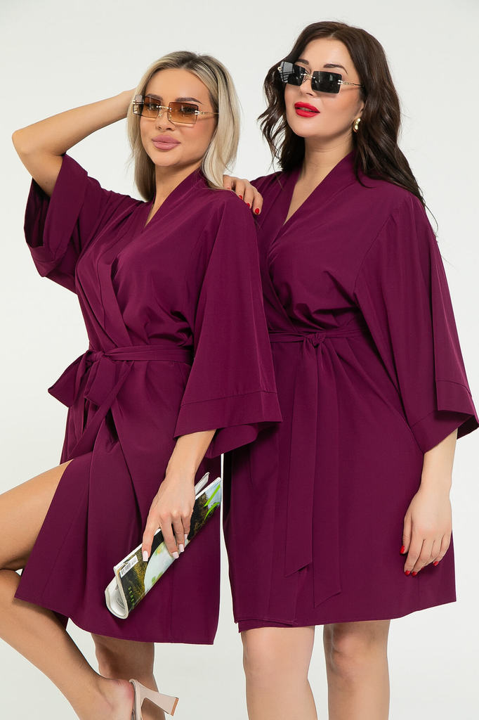 Артикул: ДО12833-21. Тип ткани: синтетический. Состав: 95% полиэстер, 5% эластан. Материал: плательный. Цвет: бордовый. Принт: отсутствует. Длина: мини. Вид застежки: без застёжки. Силу... Показать описаниеэт: прямой. Карманы: отсутствуют. Подкладка: отсутствует. Декоративные элементы: отсутствуют. Длина по спинке от верхней точки плеча: 44/ 95 см, 46-48/ 96 см, 50-54/ 98 см. Размер изделия на модели: 44 Рост модели: 167 см. Устали от однообразной одежды для дома? Можно добавить нотку стиля и элегантности в свою повседневность! Халат-кимоно — идеальная вещь для создания уюта и комфорта в вашем доме. Дополненный элегантным поясом, который входит в комплект, что позволит вам сделать акцент на талии и подчеркнуть фигуру. В халате имеются внутренние завязки, которые гарантируют, что халат не развяжется непреднамеренно. Благодаря своим широким рукавам, обеспечивает максимальный комфорт и свободу движений. Пленительный и стильный, он придаст вашему образу неповторимую нотку оригинальности. Уход за изделием: ручная стирка до 30 градусов; нельзя отбеливать; отжим запрещён; гладить при t не более 110 С; гладить с изнанки. Внимание! Рекомендуем ориентироваться на размерную сетку и выбирать свой привычный размер, согласно размерной таблице. *Допуск отклонения длины при массовом производстве 1-3 см является нормой.