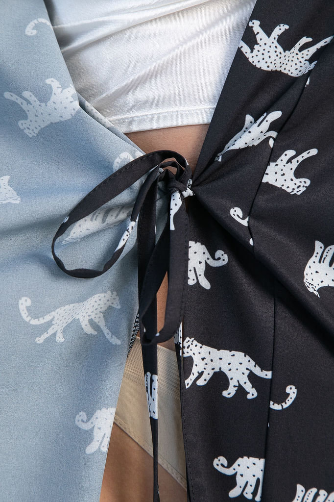 Артикул: ДО12832-21. Тип ткани: синтетический. Состав: 95% полиэстер, 5% эластан. Материал: плательный. Цвет: чёрный. Принт: леопарды. Длина: мини. Вид застежки: без застёжки. Силуэт:&n... Показать описаниеbsp;прямой. Карманы: отсутствуют. Подкладка: отсутствует. Декоративные элементы: отсутствуют. Длина по спинке от верхней точки плеча: 44/ 95 см, 46-48/ 96 см, 50-54/ 98 см. Размер изделия на модели: 44 Рост модели: 167 см. Устали от однообразной одежды для дома? Можно добавить нотку стиля и элегантности в свою повседневность! Халат-кимоно — идеальная вещь для создания уюта и комфорта в вашем доме. Дополненный элегантным поясом, который входит в комплект, что позволит вам сделать акцент на талии и подчеркнуть фигуру. В халате имеются внутренние завязки, которые гарантируют, что халат не развяжется непреднамеренно. Благодаря своим широким рукавам, обеспечивает максимальный комфорт и свободу движений. Пленительный и стильный, он придаст вашему образу неповторимую нотку оригинальности. Уход за изделием: ручная стирка до 30 градусов; нельзя отбеливать; отжим запрещён; гладить при t не более 110 С; гладить с изнанки. Внимание! Рекомендуем ориентироваться на размерную сетку и выбирать свой привычный размер, согласно размерной таблице. *Допуск отклонения длины при массовом производстве 1-3 см является нормой.