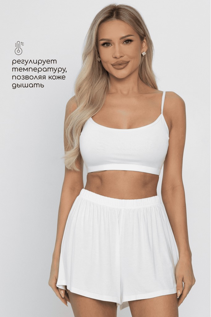 Состав : 95% вискоза, 5% лайкра Материал : трикотаж Цвет : молочный Принт : отсутствует Силуэт : свободный Карманы : отсутствуют Резинка в поясе : да Вид застежки : без застёжки Декоративные элементы ... Показать описание: отсутствуют Отснято с пеньюаром П14486-52М Костюм женский для дома, обеспечивающий максимальный комфорт, состоит из футболки и шорт. Футболка выполнена в свободном крое с короткими рукавами, шорты тоже свободные, с резинкой на талии. Этот комплект можно использовать как для сна, так и в качестве уютной домашней одежды. Внимание! Рекомендуем ориентироваться на размерную сетку и выбирать свой привычный размер, согласно размерной таблице. *Допуск отклонения длины при массовом производстве 1-3 см является нормой. Уход за изделием: Ручная стирка или стирка в машине при температуре до 30 °C, деликатный режим. Не использовать отбеливатели. Разрешена глажка при температуре до 110 °C. При глажке использовать специальную насадку на подошве утюга, гладить с паром. Не замачивать и не выжимать. Стирать изделие наизнанку, отдельно от других вещей.
