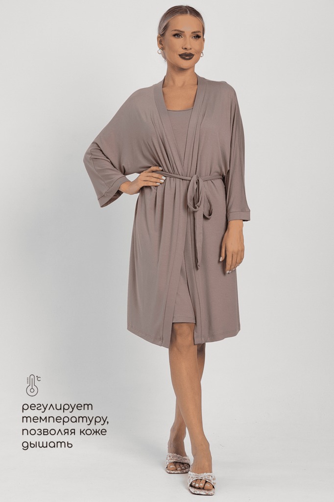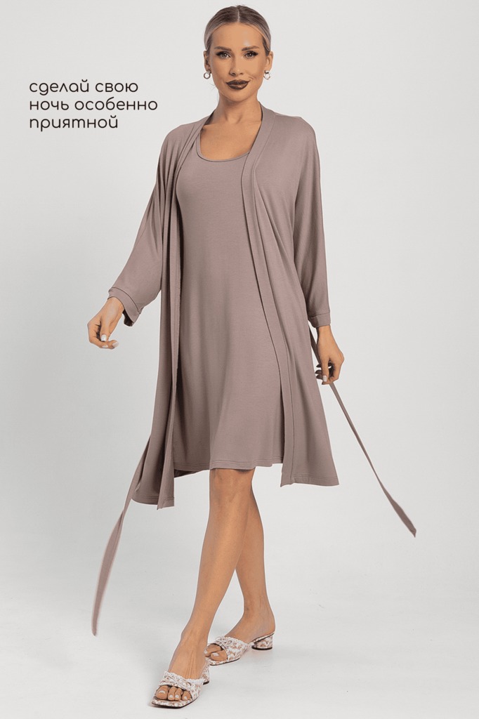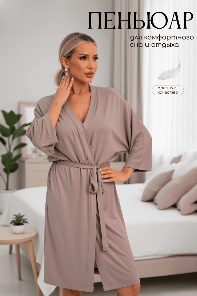 Состав : 95% вискоза, 5% лайкра Материал : трикотаж Цвет : коричневый Принт : отсутствует Силуэт : свободный Карманы : отсутствуют Подкладка : отсутствует Вид застежки : без застёжки Декоративные элем... Показать описаниеенты : отсутствуют Длина : 44-91 см, 46-91 см, 48-91 см, 50-91 см, 52-91 см Отснято с платьем П14492-52М и костюмом К14497-52М Идеальный выбор для создания уюта и расслабления в домашней обстановке. Этот пеньюар станет вашим верным спутником для спокойных вечеров, утреннего кофе или просмотра фильмов. Свободный крой и рукава длиной три четверти обеспечивают максимальный комфорт и свободу движений, а пояс из основной ткани идет в комплекте. Он создан специально для того, чтобы дарить радость и создавать атмосферу роскоши и уюта каждый день. Пеньюар изготовлен из мягкой вискозы с добавлением лайкры, что делает его приятным на ощупь и идеально подходящим для расслабленного и стильного домашнего образа. Внимание! Рекомендуем ориентироваться на размерную сетку и выбирать свой привычный размер, согласно размерной таблице. *Допуск отклонения длины при массовом производстве 1-3 см является нормой. Уход за изделием: Ручная стирка или стирка в машине при температуре до 30 °C, деликатный режим. Не использовать отбеливатели. Разрешена глажка при температуре до 110 °C. При глажке использовать специальную насадку на подошве утюга, гладить с паром. Не замачивать и не выжимать. Стирать изделие наизнанку, отдельно от других вещей.