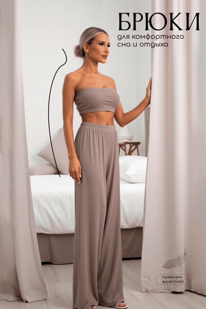 Брюки-палаццо для дома Шелк вискозы (латте) Б14499-52МВопросы по товару