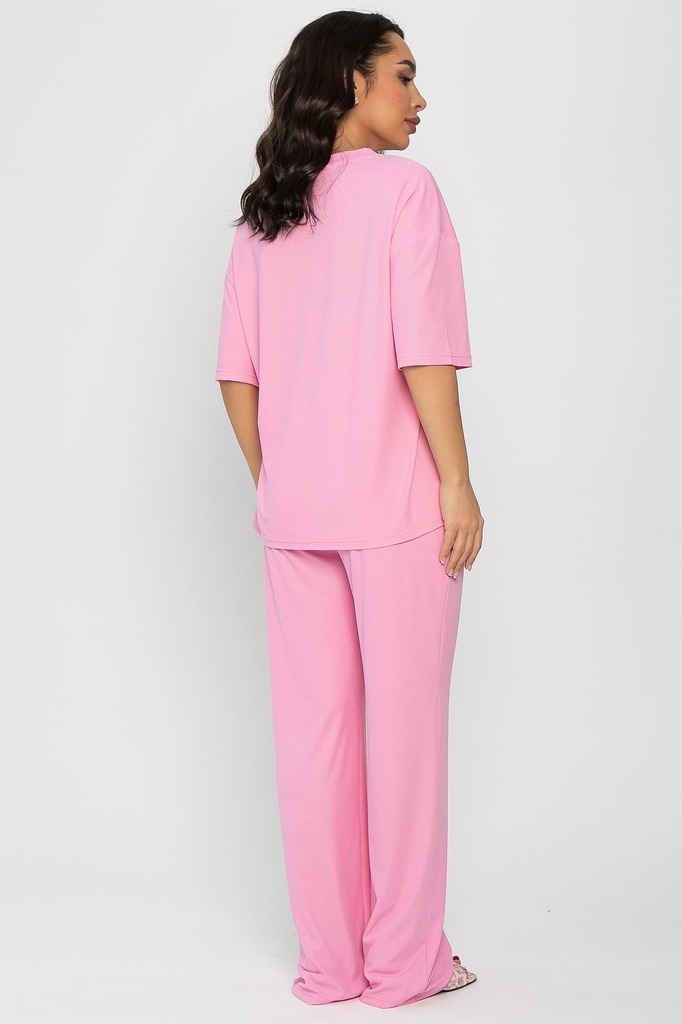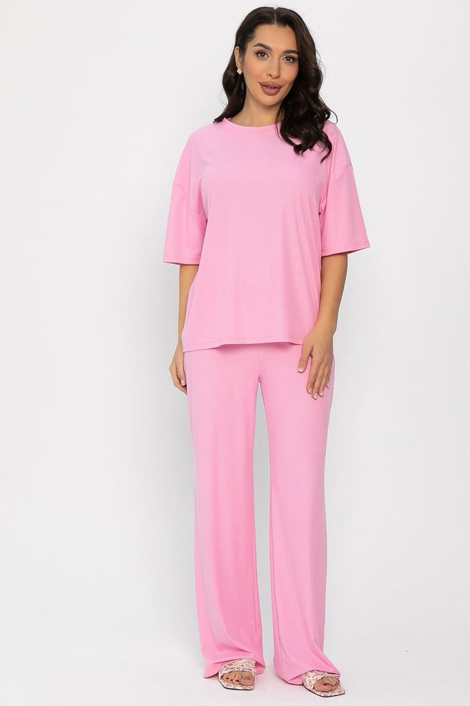 Состав : 65% полиэстер, 30% вискоза, 5% эластан Материал : трикотаж "лапша" Цвет : розовый Принт : отсутствует Силуэт : свободный Карманы : отсутствуют Резинка в поясе : да Вид застежки : без застёжки... Показать описание Декоративные элементы : отсутствуют Женский домашний костюм из мягкого и приятного трикотажа сочетает в себе максимальный комфорт и стильный внешний вид. Идеально подойдет как домашний уютный вариант для сна или отдыха, а также станет вашим надежным спутником в повседневной жизни благодаря своей функциональности и удобству. Брюки по талии на резинке. Такой костюм станет незаменимым элементом вашего гардероба, позволяя вам чувствовать себя свободно и непринужденно каждый день. Внимание! Рекомендуем ориентироваться на размерную сетку и выбирать свой привычный размер, согласно размерной таблице. *Допуск отклонения длины при массовом производстве 1-3 см является нормой. Уход за изделием: Ручная стирка или стирка в машине при температуре до 30 °C, деликатный режим. Не использовать отбеливатели. Разрешена глажка при температуре до 110 °C. При глажке использовать специальную насадку на подошве утюга, гладить с паром. Не замачивать и не выжимать. Стирать изделие наизнанку, отдельно от других вещей.