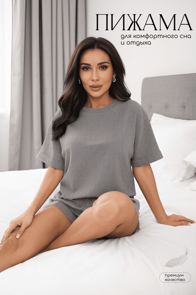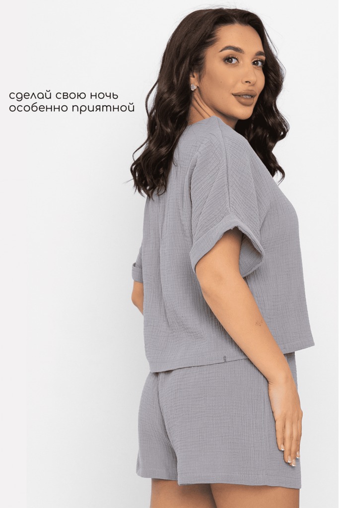 Состав : 100% хлопок Материал : муслин Цвет : серый Принт : отсутствует Силуэт : свободный Карманы : отсутствуют Резинка в поясе : да Вид застежки : без застёжки Декоративные элементы : отсутствуют От... Показать описаниеснято с халатом-кимоно П14577-52М Комплект для дома и отдыха из муслина — это гармоничное сочетание стиля и удобства. Он создан для того, чтобы подарить вам незабываемые моменты расслабления и наслаждения. В комплект входят футболка и шорты, которые идеально сочетаются друг с другом. Футболка укороченного кроя с цельнокроеными рукавами, обработанными манжетами, и свободным силуэтом обеспечивает максимальный комфорт. Шорты свободного кроя с цельнокроеным поясом и тонкой мягкой резинкой по талии. Муслин — это натуральная ткань из хлопка, которая идеально подходит для домашнего отдыха. В ней вы будете чувствовать себя комфортно и уютно. Позвольте себе насладиться отдыхом с нашим новым комплектом из муслина и получите максимум удовольствия и стиля! Внимание! Рекомендуем ориентироваться на размерную сетку и выбирать свой привычный размер, согласно размерной таблице. *Допуск отклонения длины при массовом производстве 1-3 см является нормой. Уход за изделием: Ручная стирка или стирка в машине при температуре до 30 °C, деликатный режим. Не использовать отбеливатели. Разрешена глажка при температуре до 110 °C. При глажке использовать специальную насадку на подошве утюга, гладить с паром. Не замачивать и не выжимать. Стирать изделие наизнанку, отдельно от других вещей.