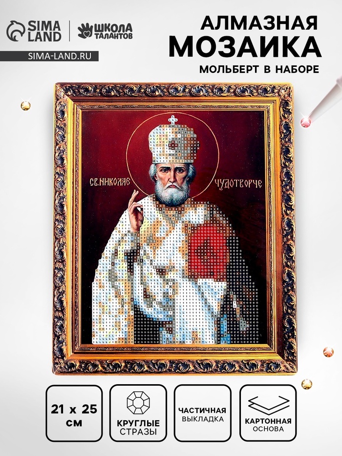 Алмазная вышивка с частичным заполнением «Николай Чудотворец» 21?25 см, холст, ёмкостьВопросы по товару