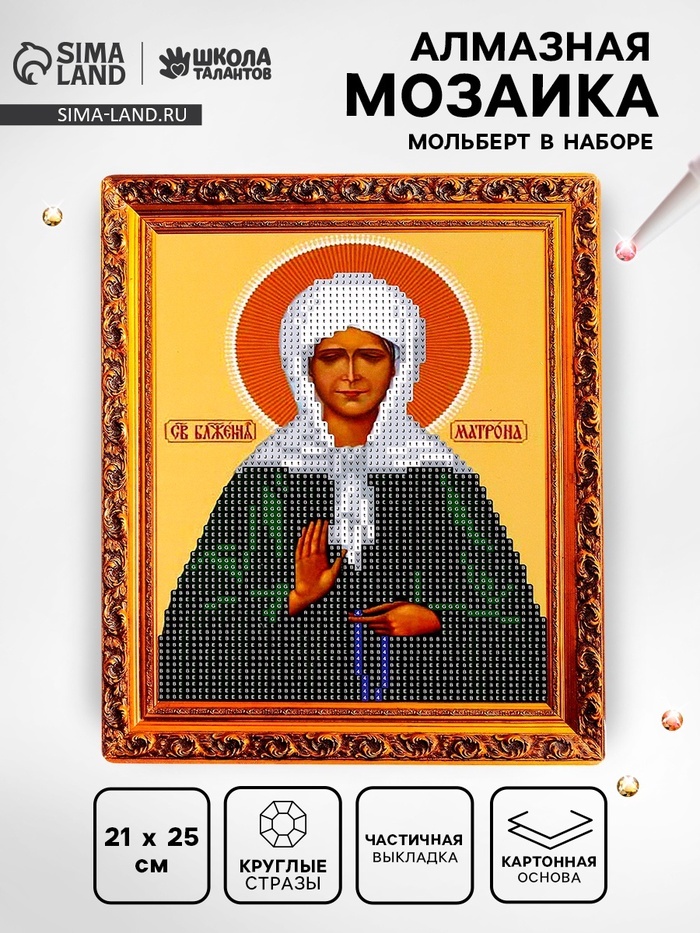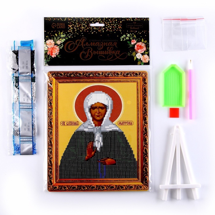 Особая серия сверкающих картин «Лики святых» c частичным заполнением на картоне позволит создать настоящий шедевр своими руками! Разложите кристаллики с помощью стилуса по указанной схеме, полностью з... Показать описаниеаполнив полотно. Картонная основа с клеевым покрытием будет надёжно удерживать стразы. На картине уже обозначены необходимые оттенки. Особенности набора Часть картины предстоит заполнить стразами, другая часть напечатана на самом холсте — такое изделие легче и быстрее создать. Поэтому набор такого небольшого формата подойдёт для тех, кто впервые пробует свои силы в этой технике или любит быстро добиваться результата. В наборе есть небольшой мольберт, с ним готовое творение можно удобно расположить на полке или столе без дополнительных креплений. В наборе есть всё необходимое: * картонный холст со схемой; * стразы; * стилус для страз; * клеевая подушечка; * подставка для готовой картины; * ёмкость для страз.