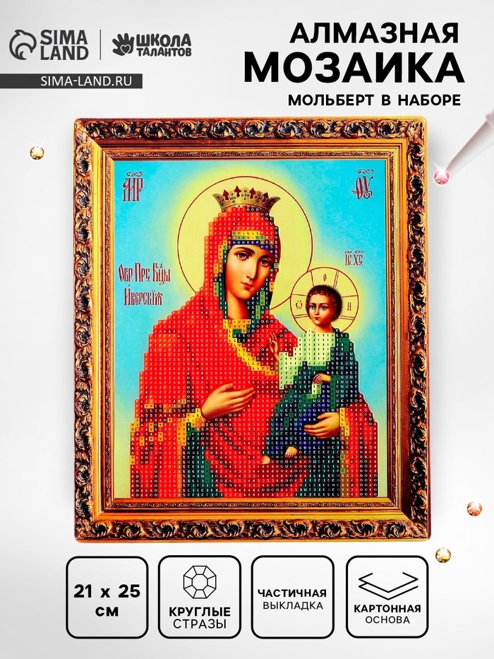 Алмазная вышивка с частичным заполнением «Богородица» 21?25 см, холст, ёмкостьВопросы по товару