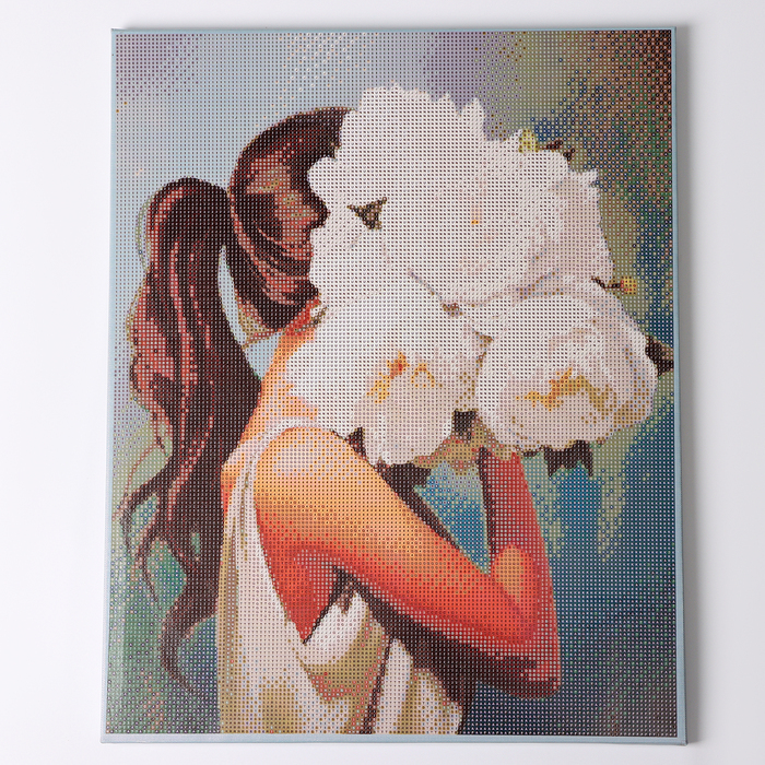 Алмазная вышивка полное заполнение «Девушка с букетом», на раме, 40?50 смВопросы по товару