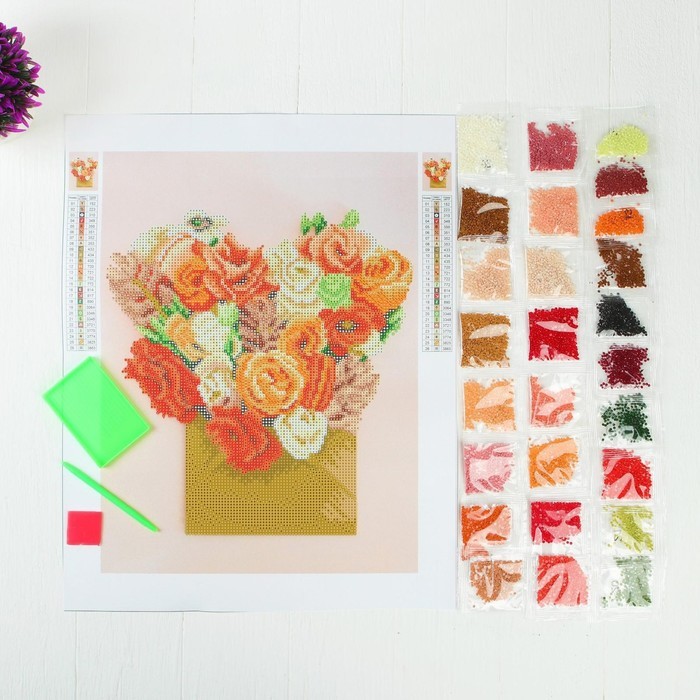 Алмазная вышивка с частичным заполнением «Цветы», 30?40 см, холст, емкость. Набор для творчестваВопросы по товару