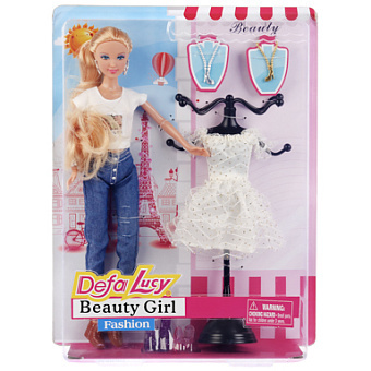 Развивающая кукла-игрушка с аксессуарами Красавица в платье. Вместе с этой стильной куколкой девочке будет интересно и весело играть благодаря тому, что руки и ноги куклы подвижны. У куклы длинные кра... Показать описаниесивые волосы, которые хозяйка куколки сможет заплетать в косички и расплетать. Игра с чудесной куколкой-модницей способствует развитию речи, фантазии, социально-коммуникативных навыков, учит девочку проявлять ответственность, любовь и заботу. Куколка с аксессуарами Красавица в платье 5 в 1: - Куколки с детально прорисованным личиком с нежными чертами; - Пышные мягкие волосы кукол позволят делать им различные причёски; - Руки и ноги куколки подвижны; - Одета в стильную и яркую повседневную одежду: майка с модным принтом + прямые джинсовые штаны; - С аксессуарами: вешалка для платьев + 2 колье + нежное белоснежное платье. Материал: пластмасса + текстиль. Представлена в ассортименте. Рекомендуем для детей от 3-х лет.