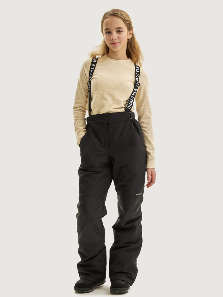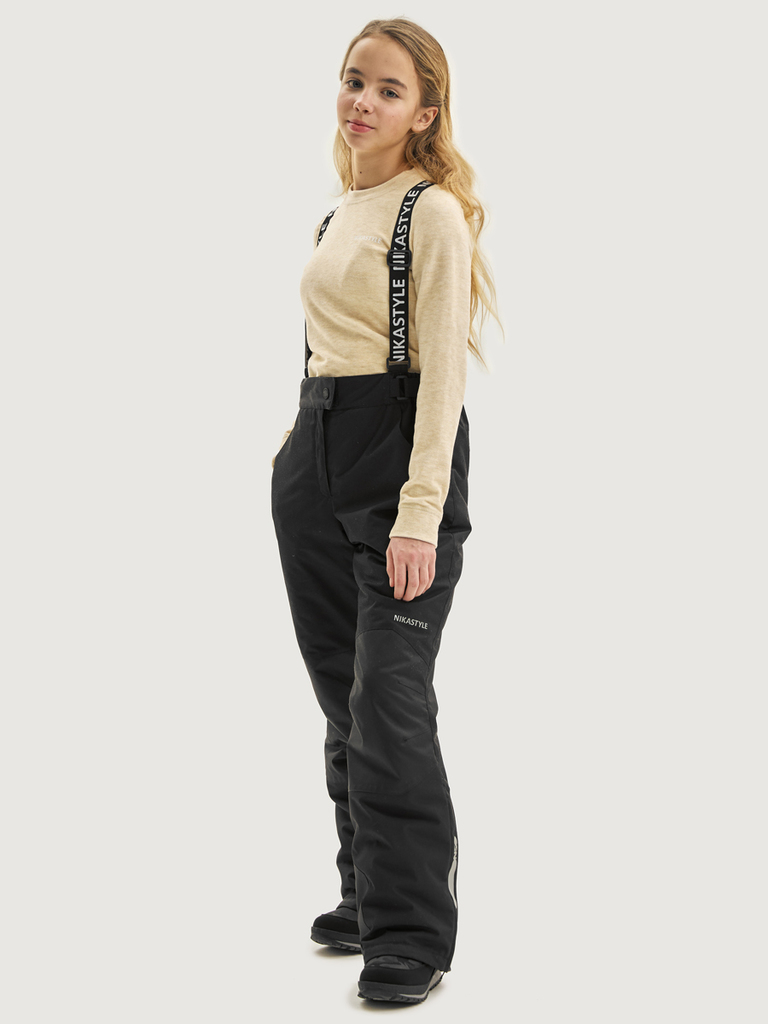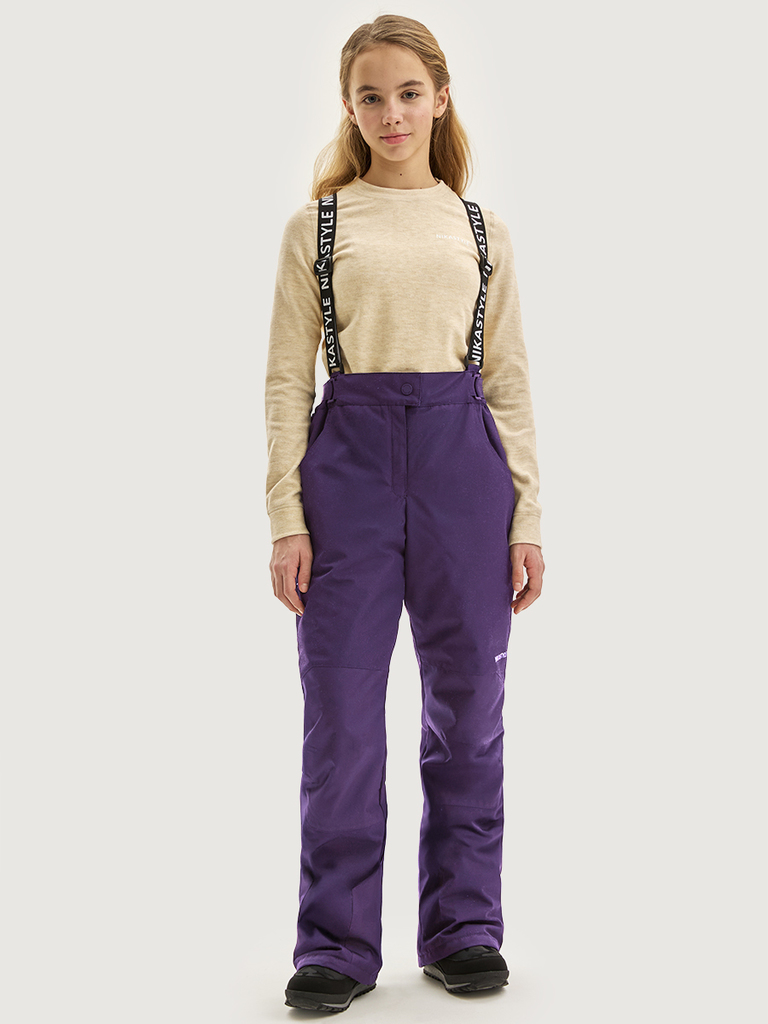 Брюки ФРИСТАЙЛ из мембранной ткани 5000/5000 с водо- грязеотталкивающей технологией TEFLON. Мембранная ткань — это непродуваемый и водонепроницаемый материал, который надежно защищает от ветра и влаги... Показать описание. Благодаря дышащим свойствам мембраны ребенку будет комфортно в любую погоду, и он не вспотеет. Ткань обработана снаружи экологически чистым протектором TEFLON для защиты от воды и грязи. Мембрана в сочетании с утеплителем нового поколения FIBERlite сохраняет тепло во время прогулок, позволяя телу дышать. Флисовая подкладка отводит влагу и имеет хорошие теплоизоляционные свойства. Удобные брюки защитят ребенка от ветра, снега и низких температур во время зимних прогулок. Функционал: •    съемная спинка, •    регулируемые бретели и дополнительная регулировка по талии, •    удобные карманы, •    флисовая подкладка до середины бедра. Мы все продумали до мелочей. Модель дополнительно оснащена: •    снегозащитными муфтами по низу брюк, •    регулировкой объема брюк под обувь на молнии, •    светоотражающими элементами для безопасности ребенка в темное время суток. Область колен и шов сидения проклеены, места повышенного трения выполнены из особо прочной ткани. Комфортная температура эксплуатации от 0°С до -30°С. Рекомендуем приобрести комплектом аксессуары, обувь и другие вещи из капсулы в карточке товара, которые отлично сочетаются с изделиями коллекции.