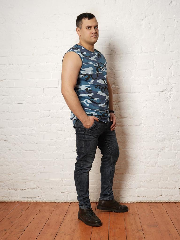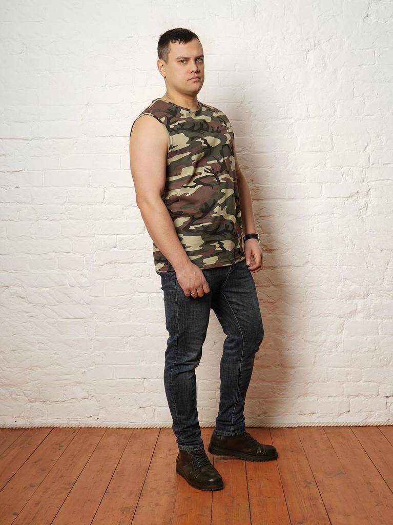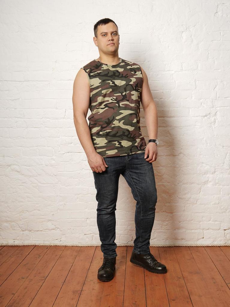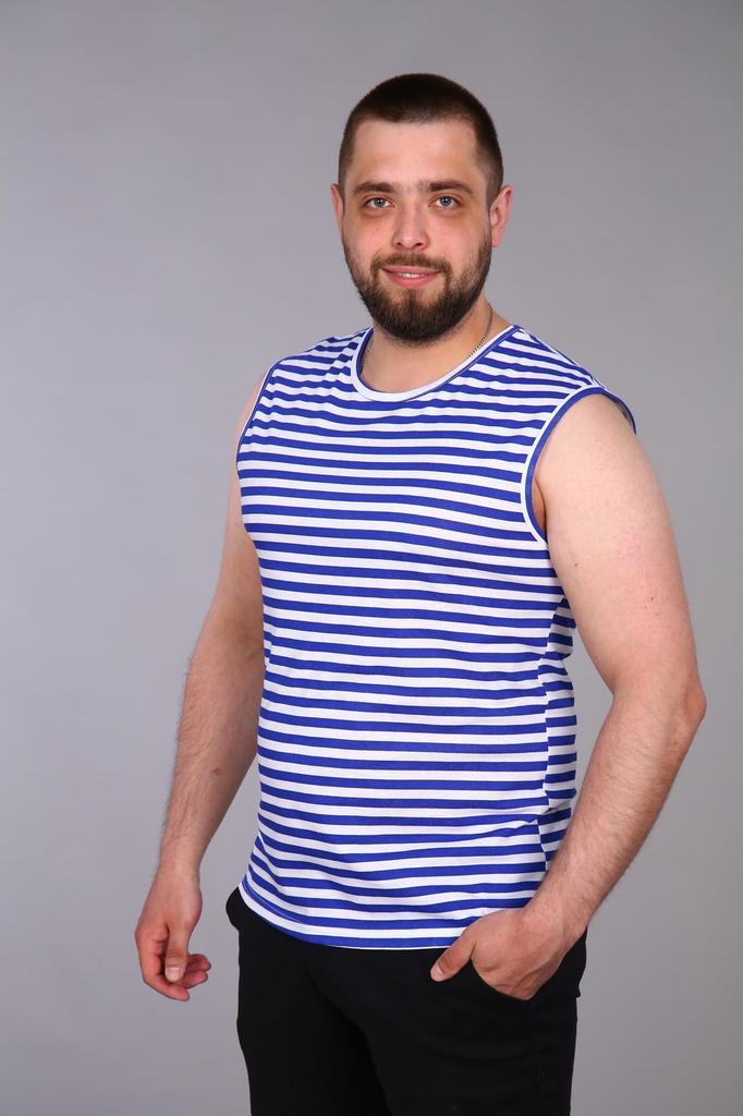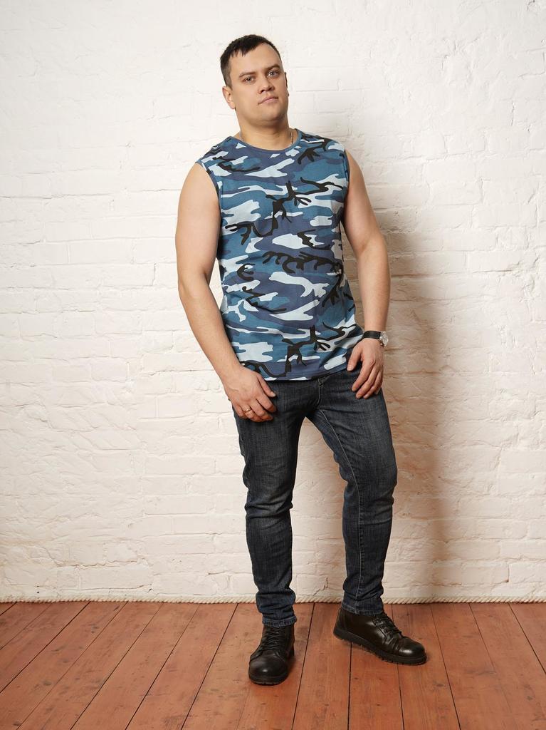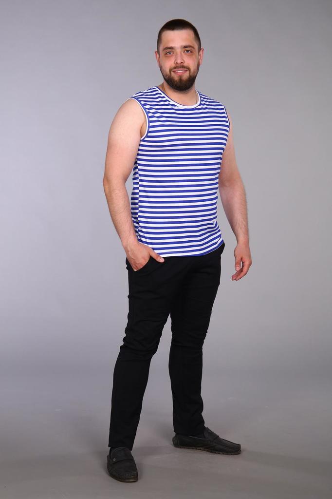Трикотаж - Кулирка (Хлопок 100%). Комфортная повседневная мужская майка, прямого силуэта.  Майка выполнена из хлопкового трикотажа. Горловина округлой формы. Отличный вариант для повседневного гардеро... Показать описаниеба.
