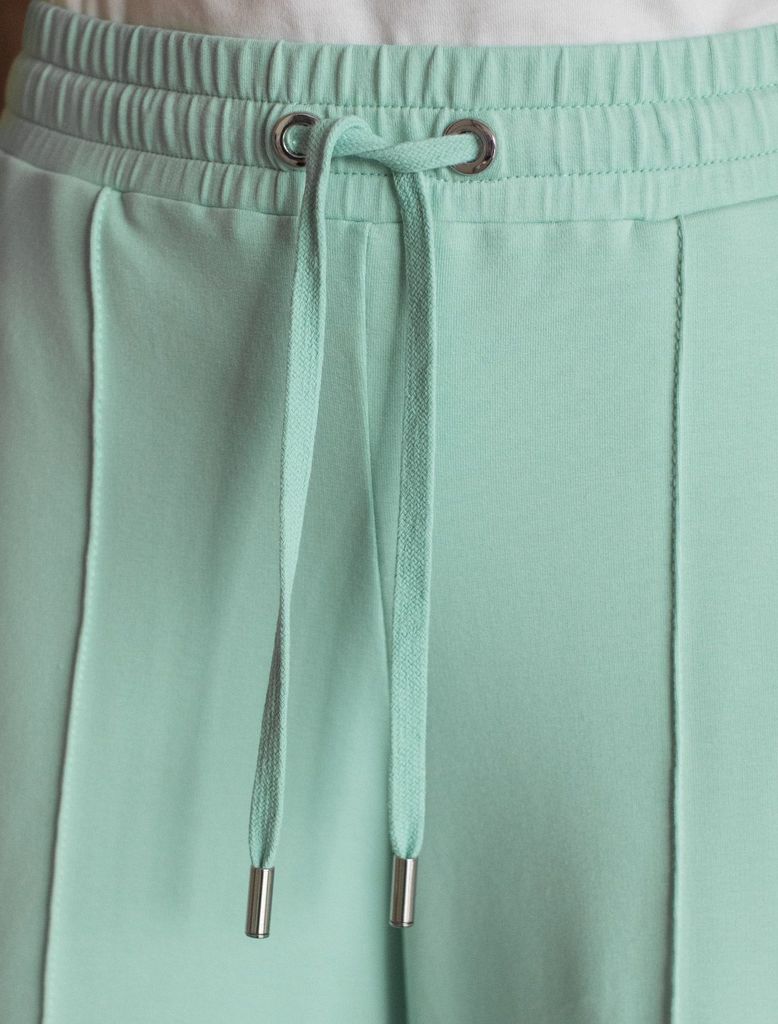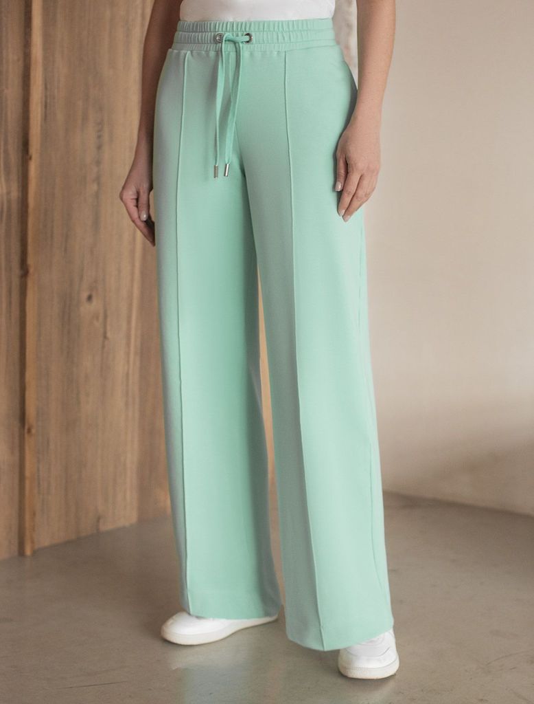 Состав: 95%Хлопок 5%ПУ Плотность: 240 Г/м2 Брюки мятного цвета прямого кроя выполнены из премиального футера-двухнитки. Лаконичный силуэт поддерживают застроченные стрелки, зрительно вытягивающие силу... Показать описаниеэт. Удобный пояс на резинке регулируется хлопковым шнурком с золотистой фурнитурой. Наличие эластана в составе изделия гарантирует комфорт и долговечность изделия. Эластичный материал хорошо пропускает воздух, позволяя телу дышать, и легко тянется, не ограничивая движения. Эти уютные брюки созданного для вашего комфорта. Нежный и стильный вариант подходит на любую фигуру, благодаря своей идеальной посадке. Свободный прямой крой обеспечивает свободу движений и максимальное удобство в любых ситуациях, поэтому они подойдут и на большие размеры, включая 56 размер. Стильный расклешенный крой добавляет изюминку в ваш образ. Эти брюки универсальны и могут стать отличным вариантом, как для занятий, так и для повседневной носки. Они легко вписываются в повседневный образ, благодаря универсальности и элегантности. Достоинства фигуры подчеркиваются, а силуэт визуально вытягивается за счет кроя палаццо и стрелок. В этих спортивных брюках вы будете чувствовать себя комфортно и уверенно, наслаждаясь каждым моментом дня. Рекомендуем сочетать с артикулами: D49.160, D49.168