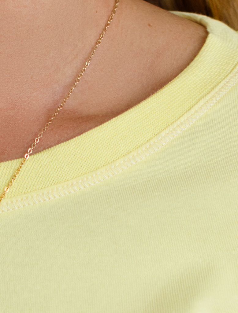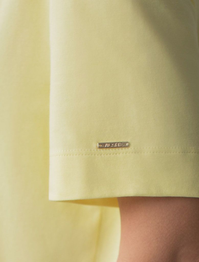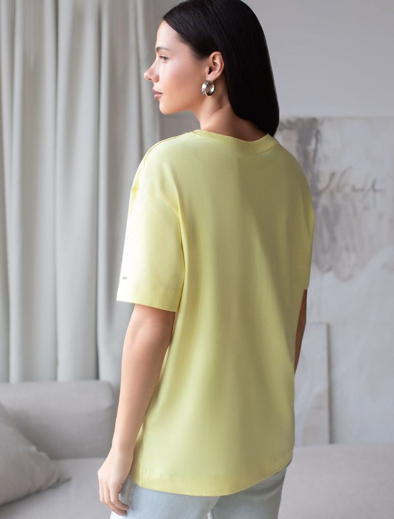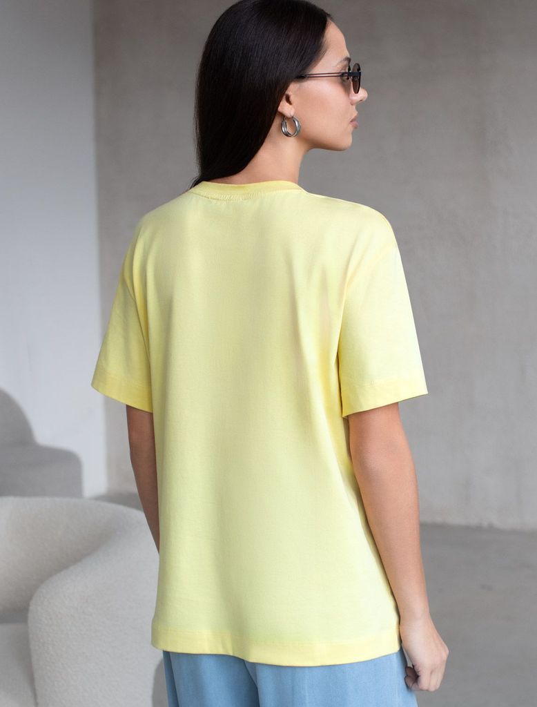Состав: 92%Хлопок 8%ПУ Плотность: 170 Г/м2 Модная футболка лимонного цвета привлекает внимание своим интересным дизайном и ярким принтом. Благодаря прямому крою изделие комфортно садится на любую фигу... Показать описаниеру, в том числе на большие размеры, и не сковывает движений. Круглый вырез подчеркивает современный стиль, а натуральный материал из хлопка с добавлением эластана обеспечивает удобство в повседневной носке и приятные тактильные ощущения. Прочность и износостойкая структура сохраняет первоначальную форму футболки после множества стирок. Рукава имеют аккуратные подгибы, что придает изделию завершенность и помогает сохранять аккуратный внешний вид. Принт надписи нанесен красками с устойчивым покрытием, перевод надписи: Exluzive moments collection only - Только коллекция эксклюзивных моментов. Стильная футболка гармонично вписывается в любой гардероб и подойдет для прогулок, отдыха дома или неформальных встреч. Благодаря особенностям кроя модель хорошо сидит, скрывая недостатки и подчеркивая достоинства. Удобная футболка идеально сочетается с базовыми вещами, позволяя создавать новые интересные образы каждый день.